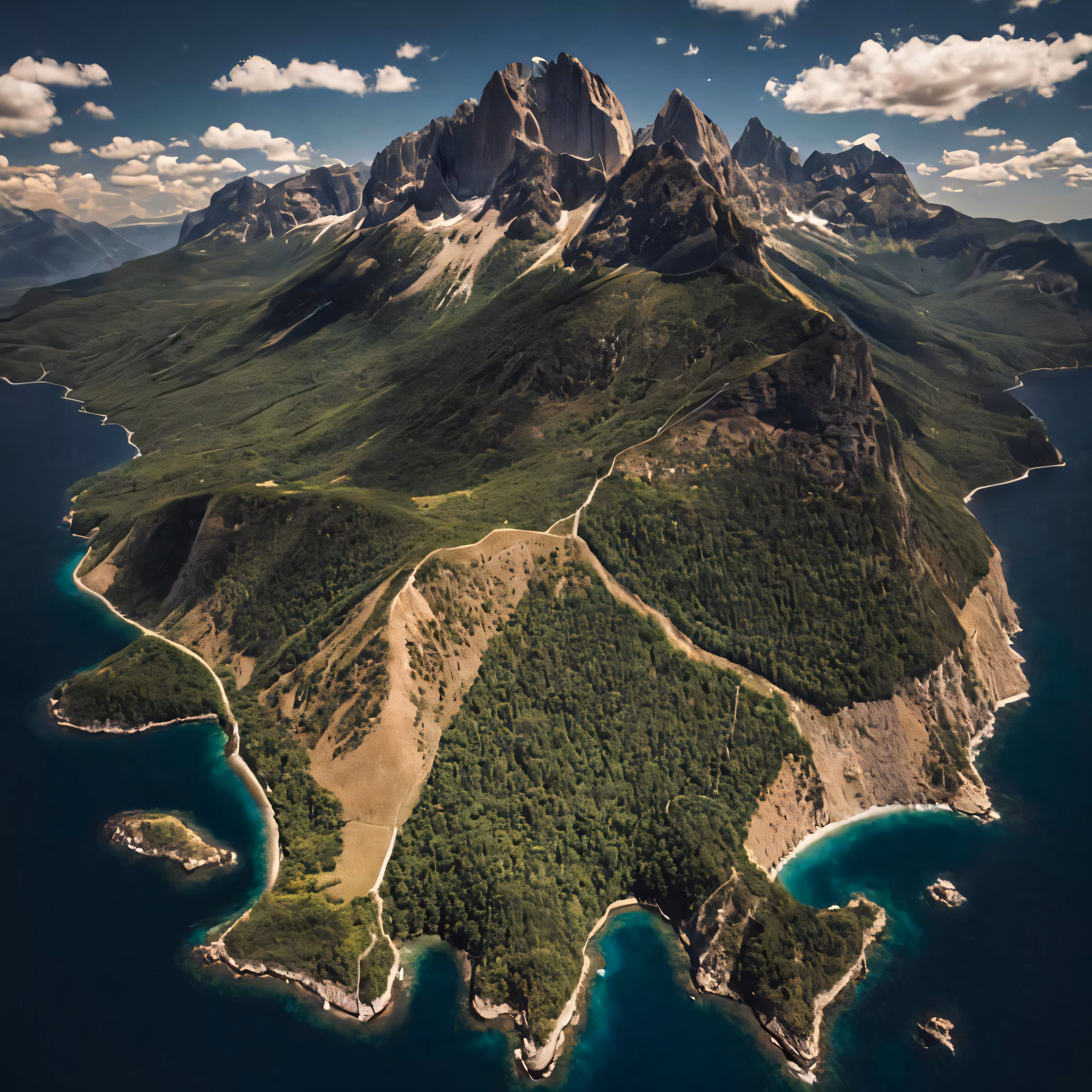 High resolution picture, free to use, an aerial view of mountains, lakes and lakes