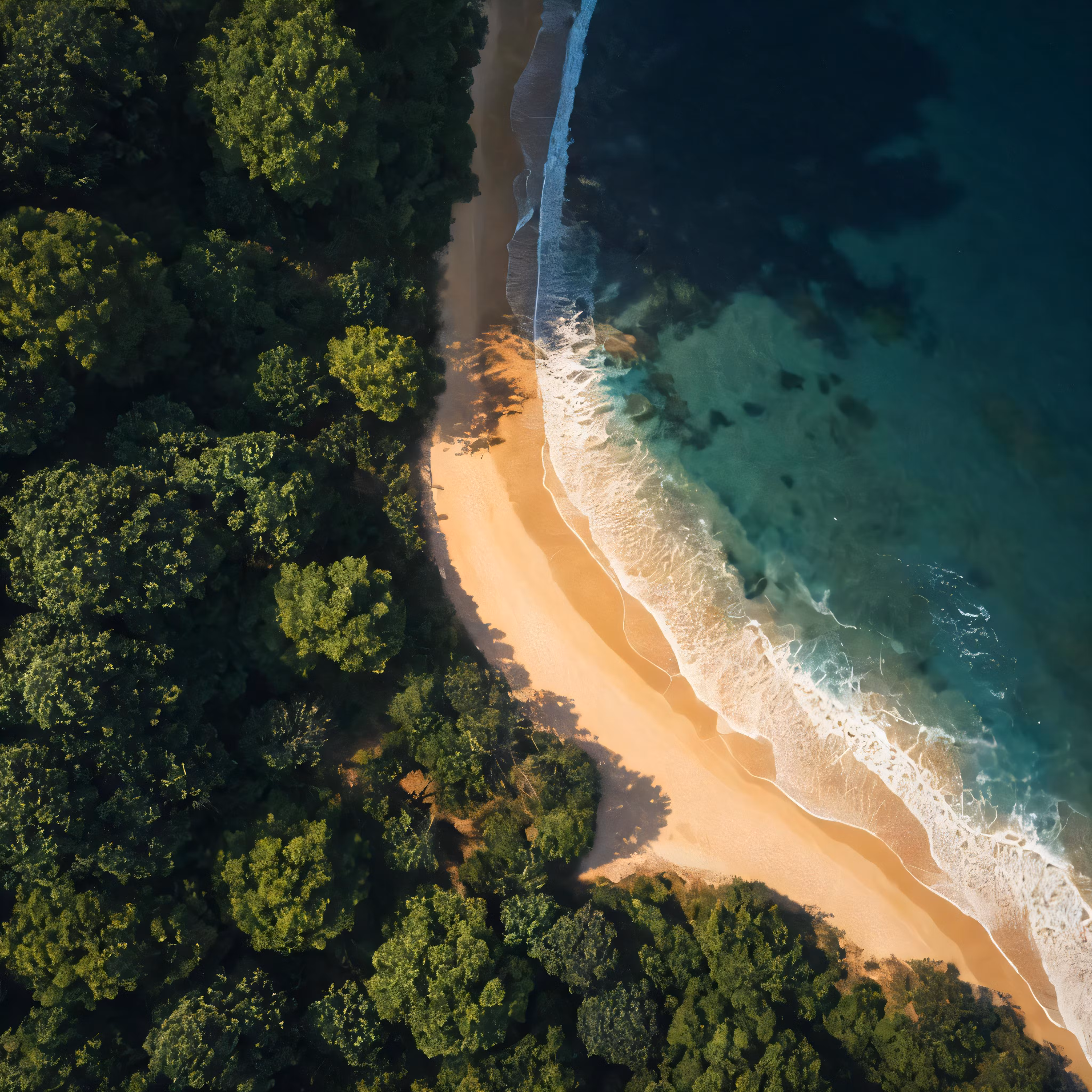 High resolution picture, free to use, an aerial view of the beach and wooded shoreline