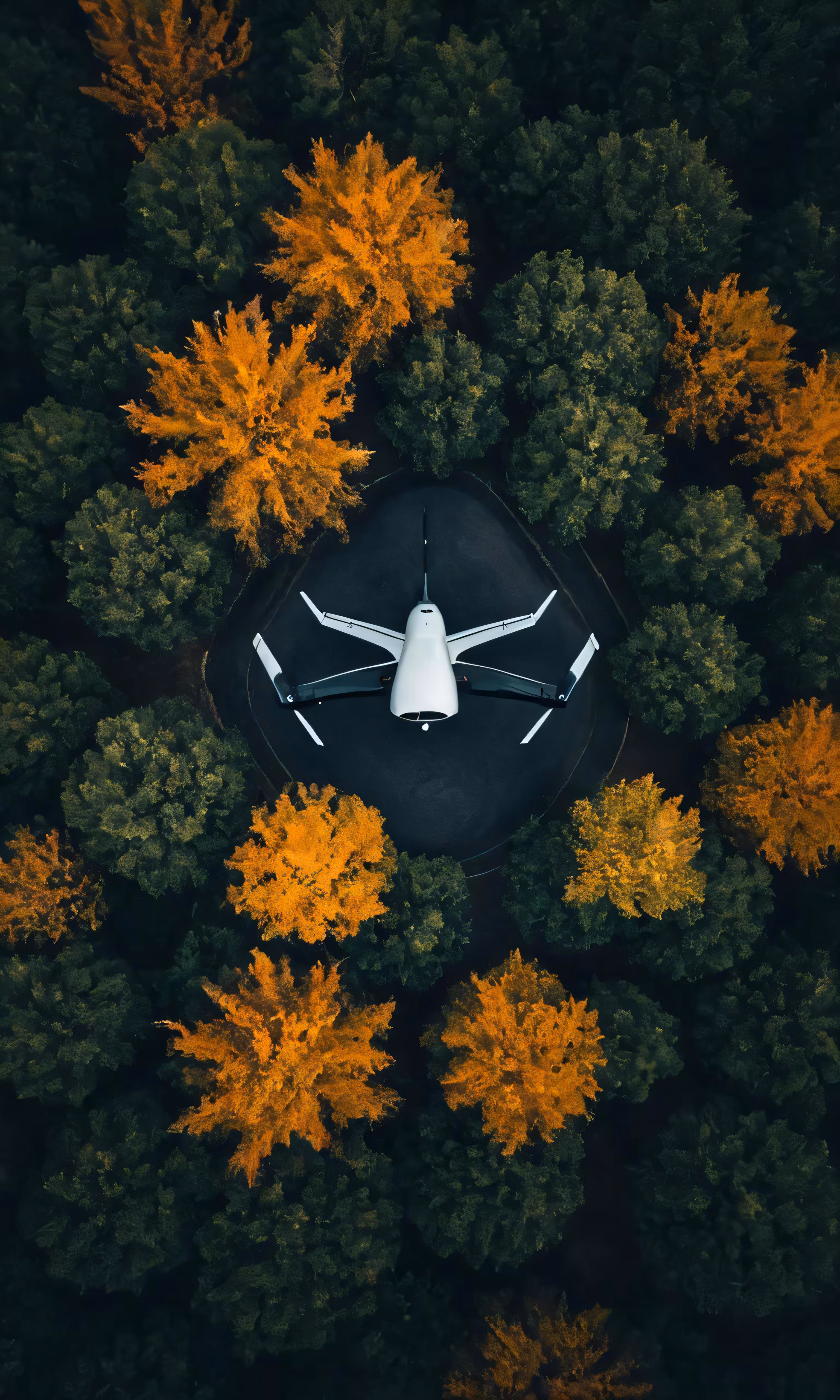 High resolution picture, free to use, an aerial view of trees with a plane on a runway