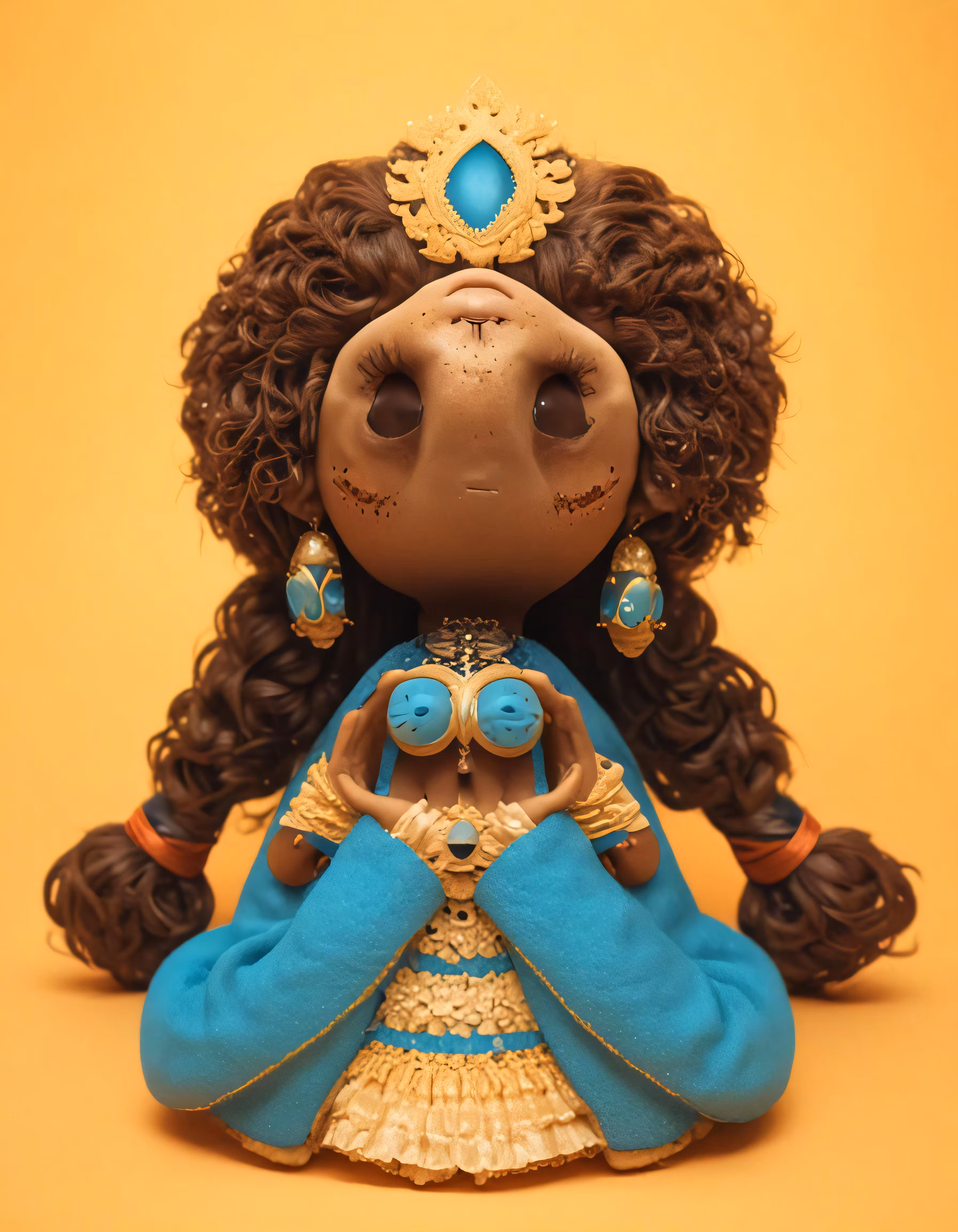 High resolution picture, free to use, an african american doll with long curly hair and dress