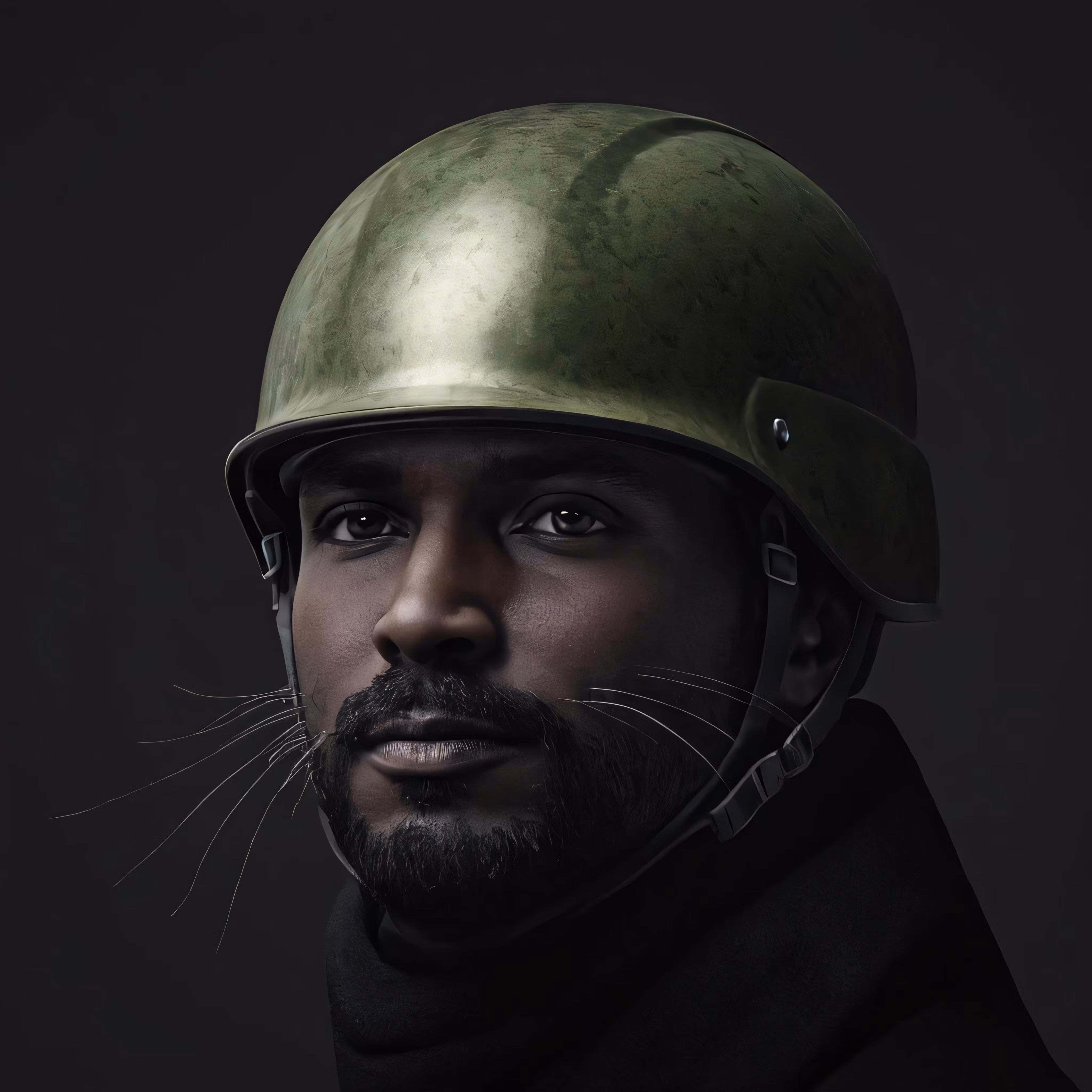 High resolution picture, free to use, an african american man with a beard and a green helmet