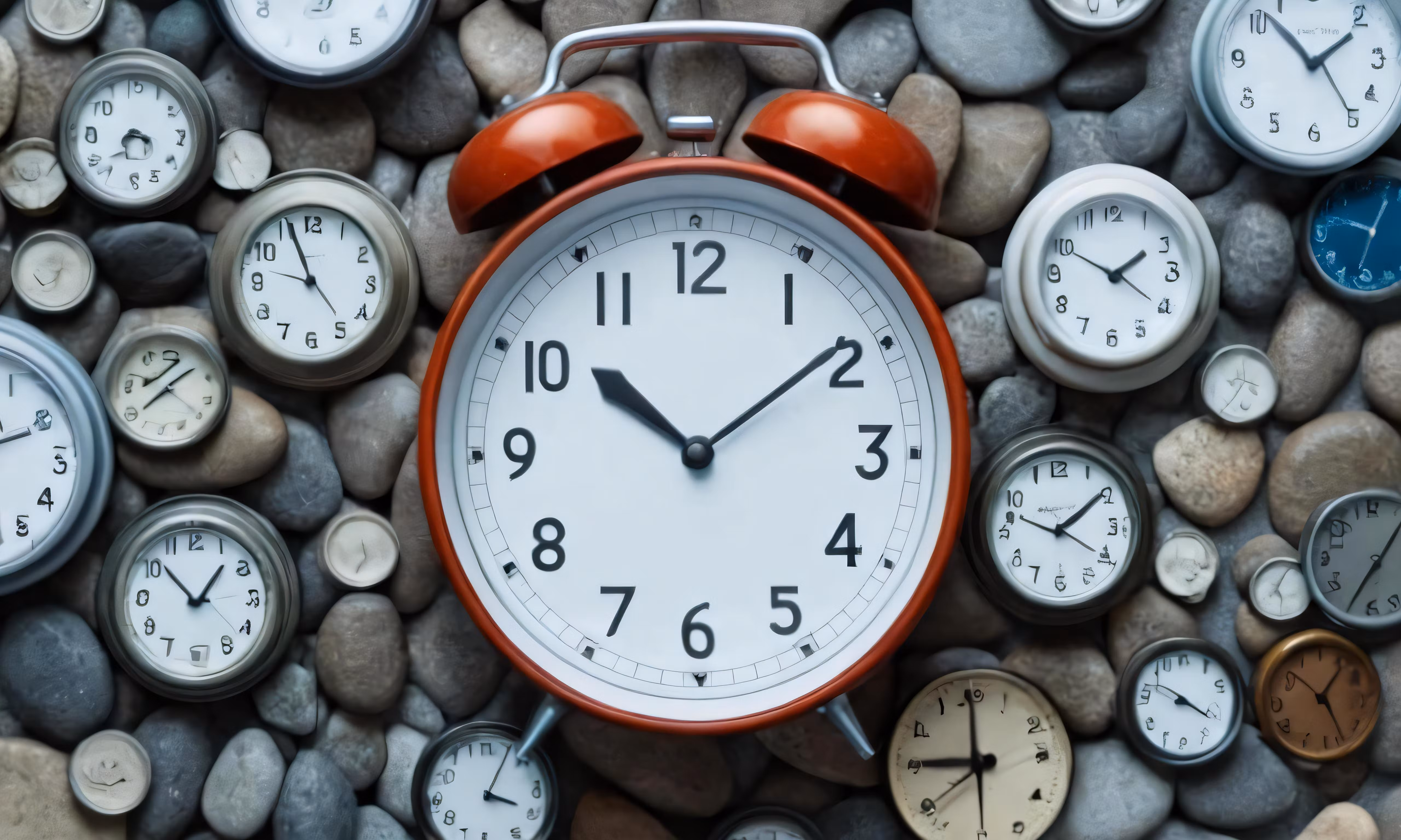 High resolution picture, free to use, an alarm clock surrounded by many different colors