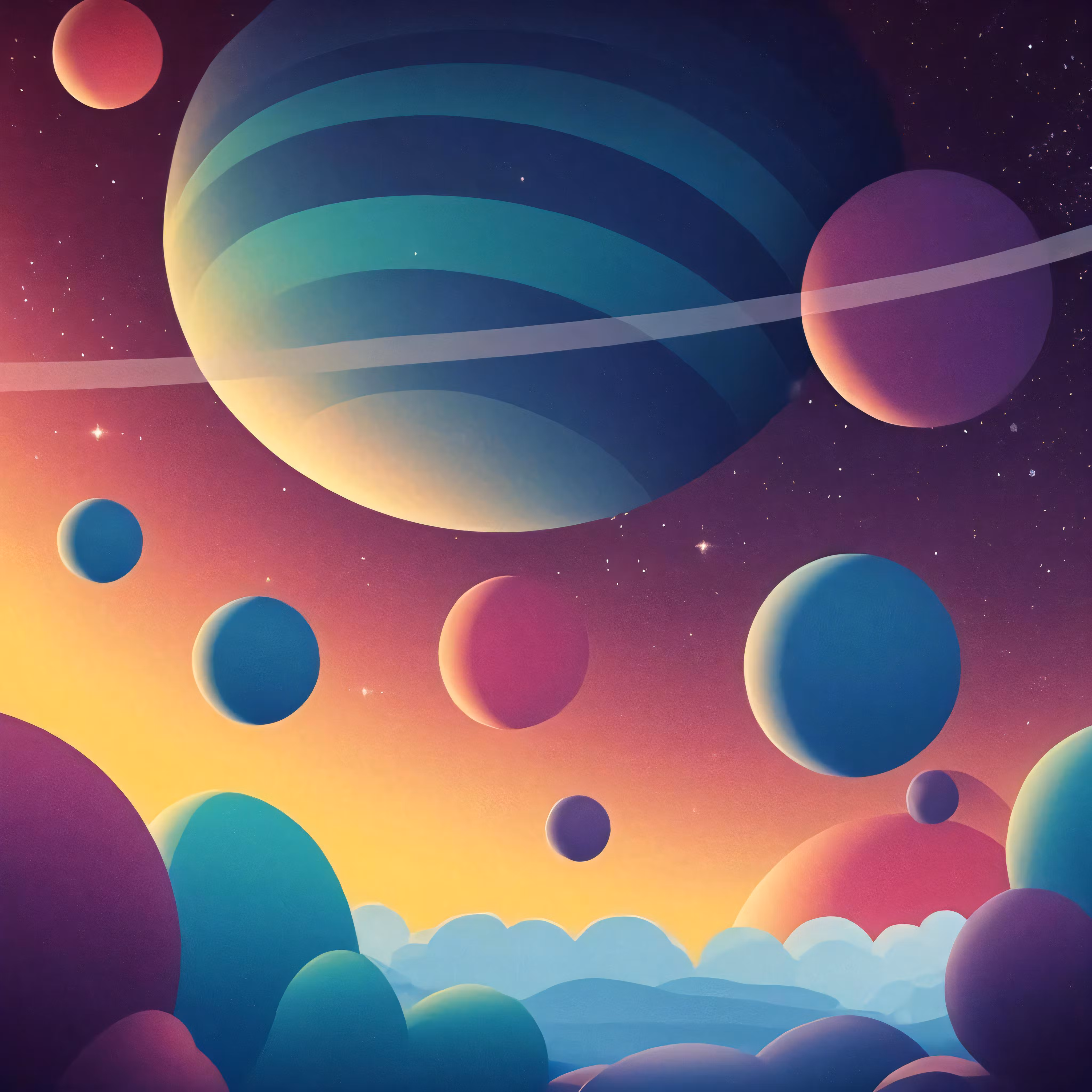 High resolution picture, free to use, an alien scene with eight planets in the sky