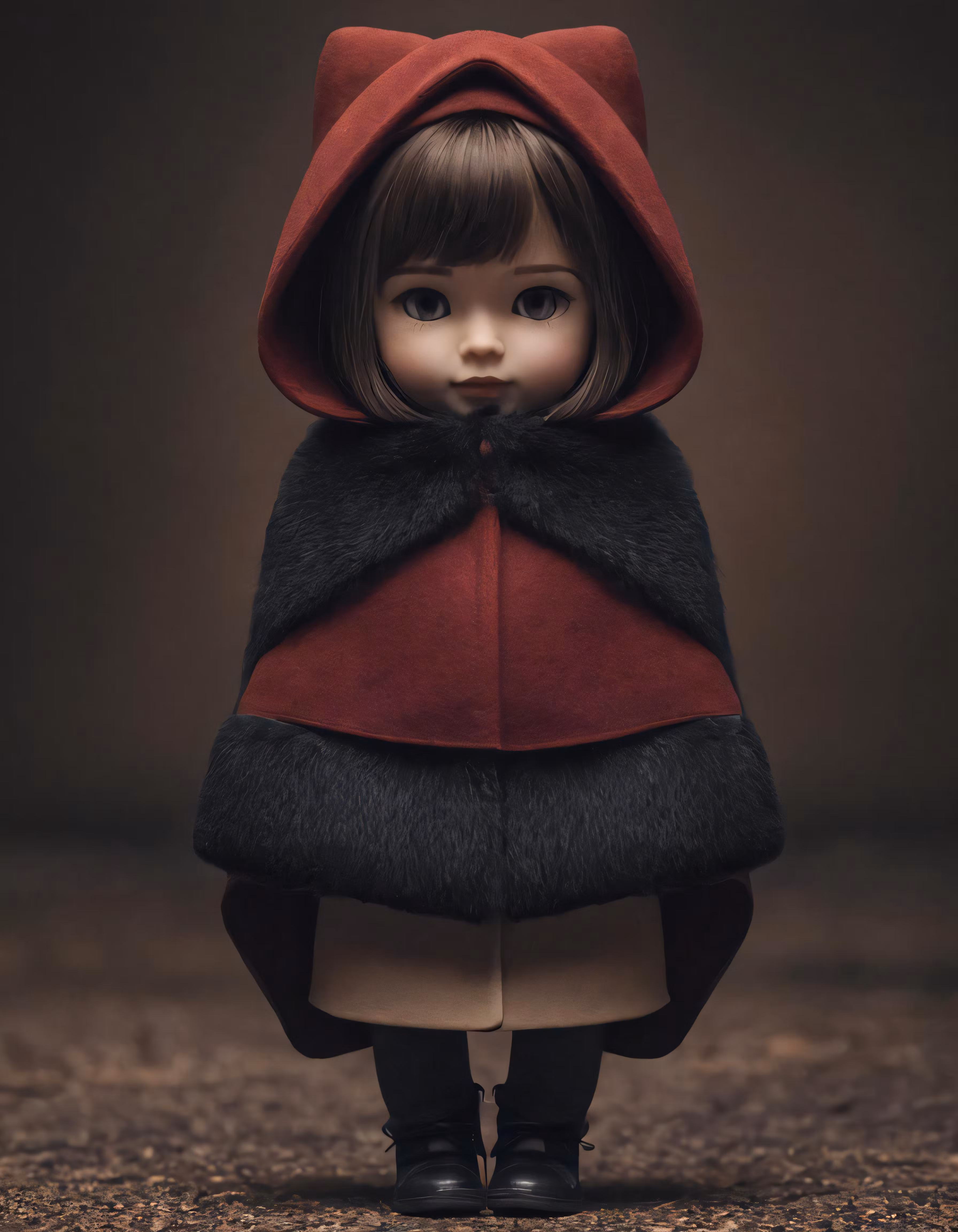 High resolution picture, free to use, an altered photo of a doll dressed in a red cape and brown skirt