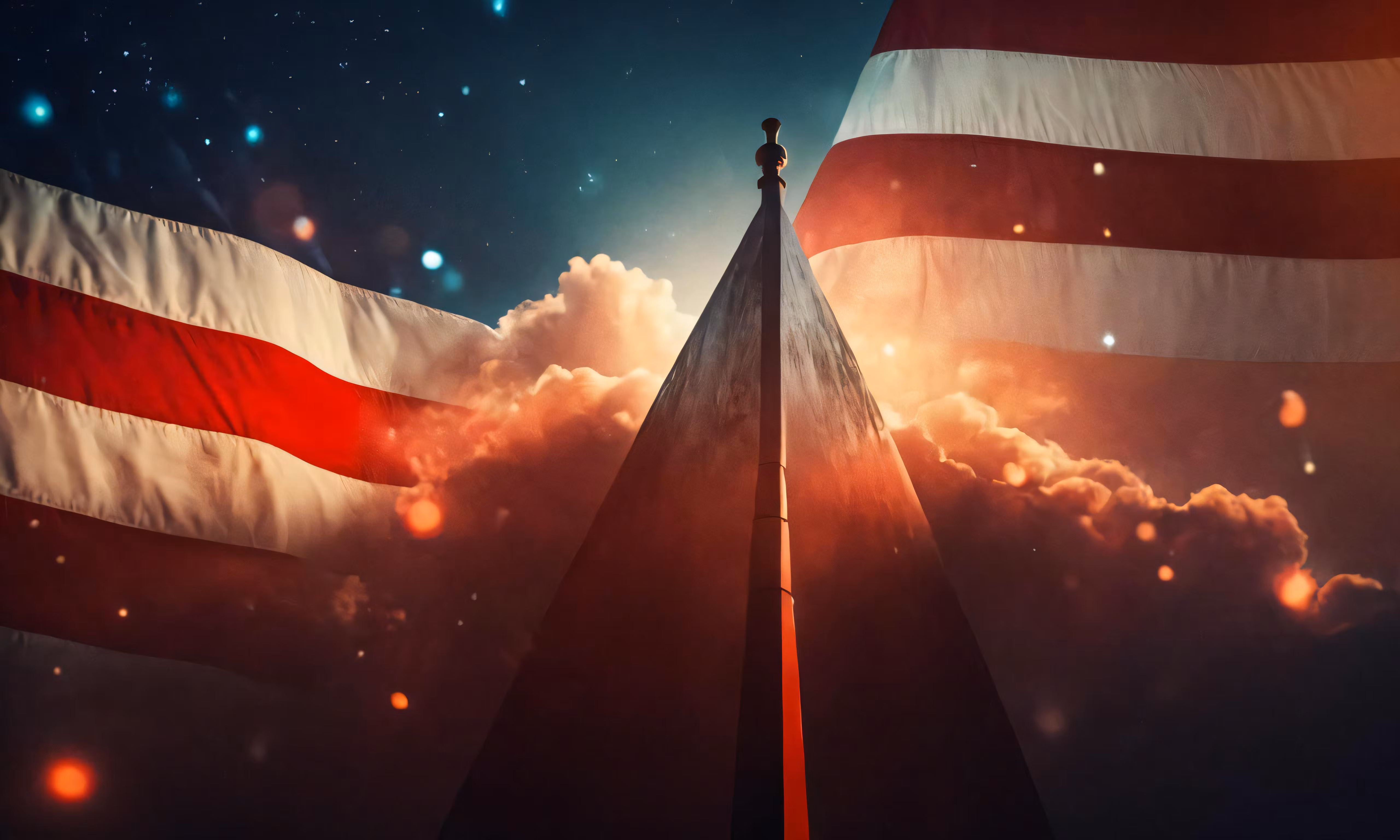 High resolution picture, free to use, an american flag with the sun shining through it