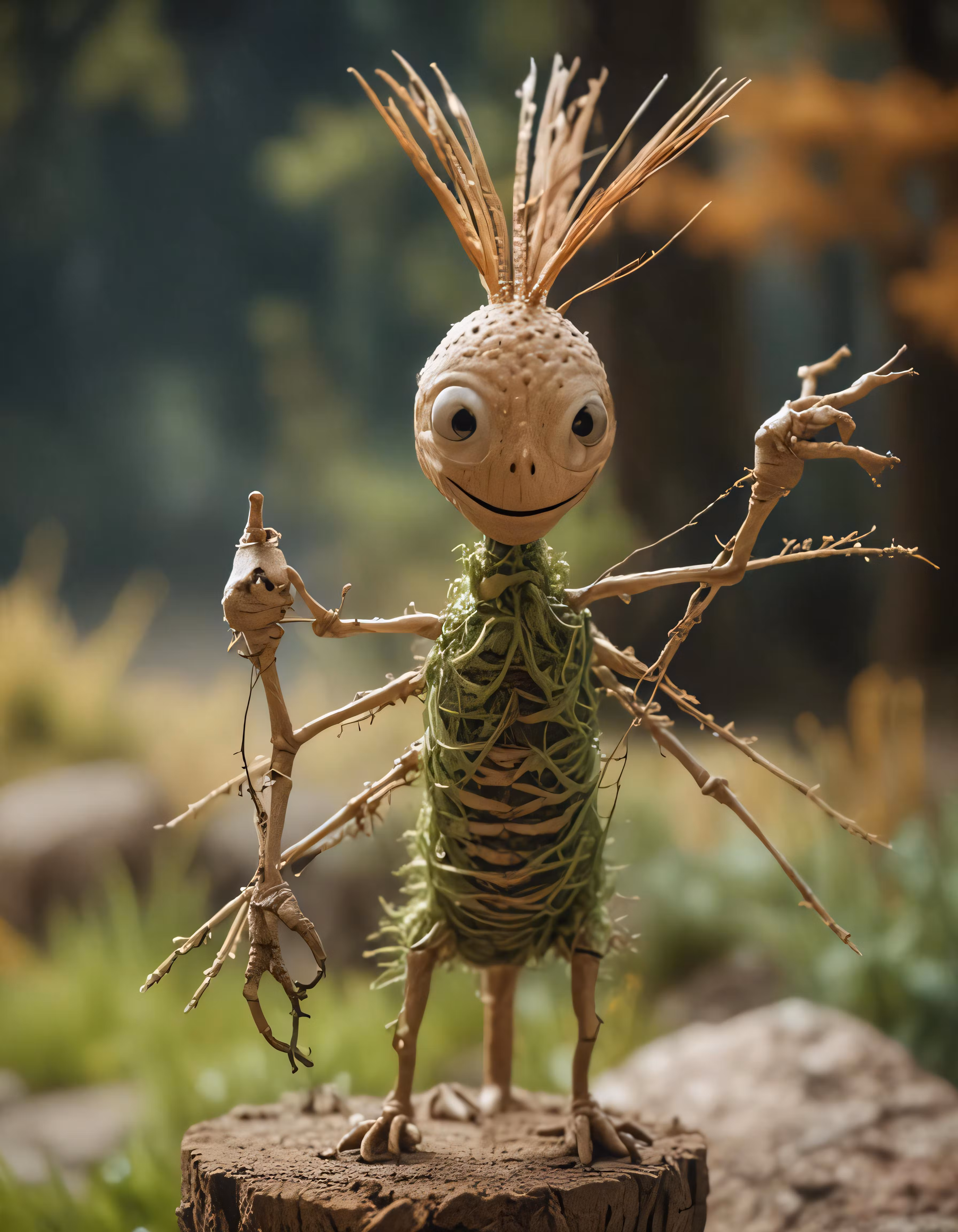 High resolution picture, free to use, an animal   like thing made from various branches, on a wood stump