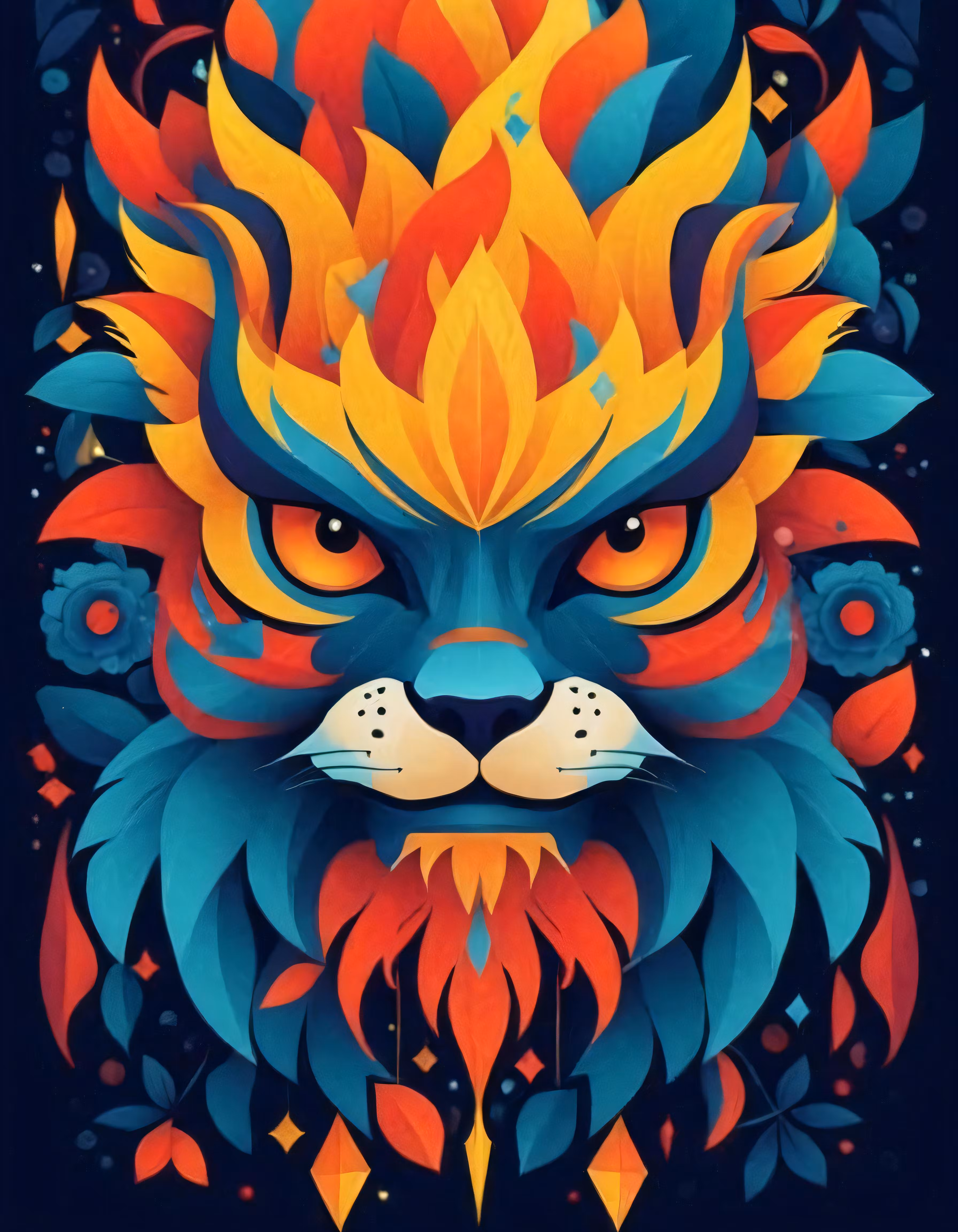 High resolution picture, free to use, an animal face painted in psychedelic colors