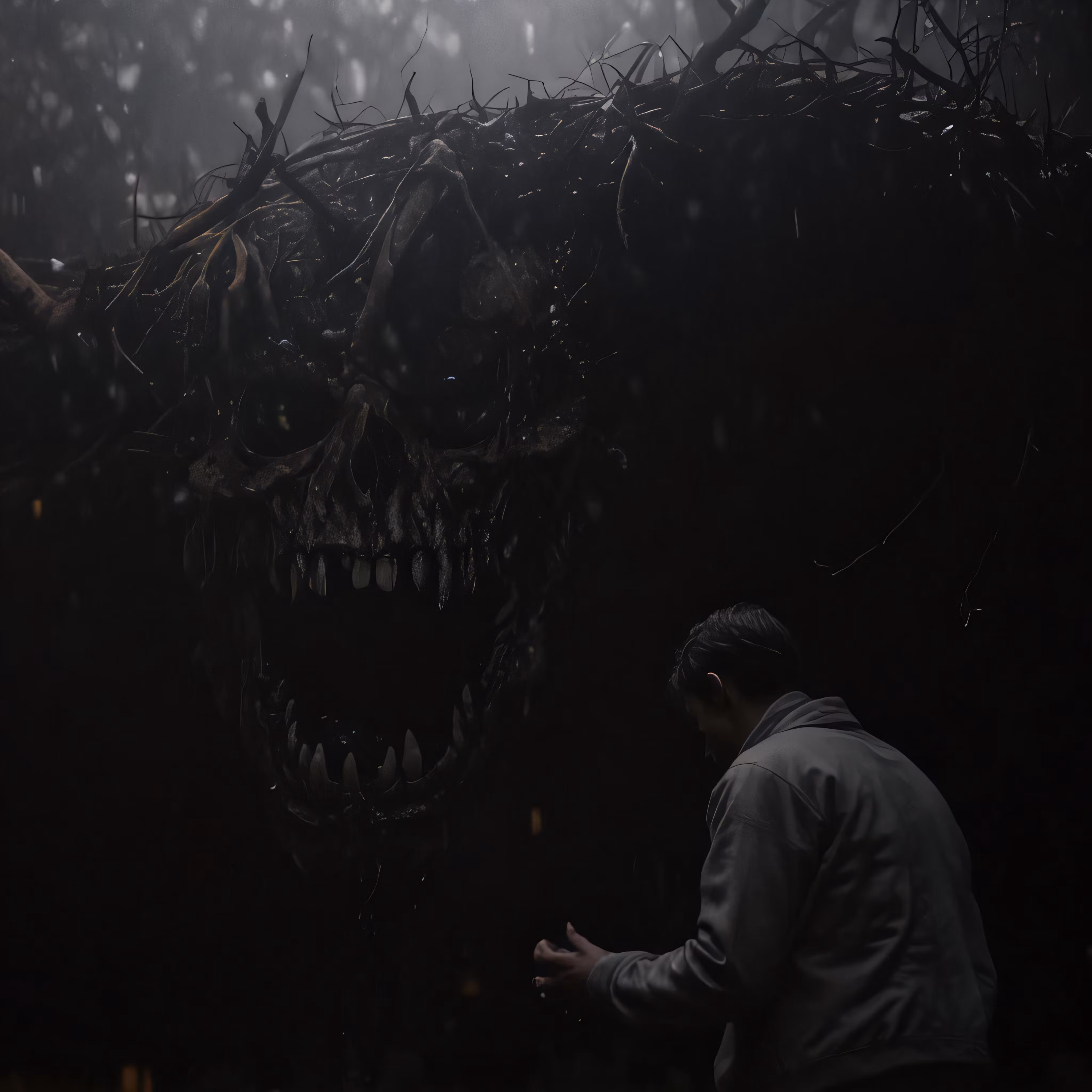 High resolution picture, free to use, an animal in a dark cave that looks like something from a demon
