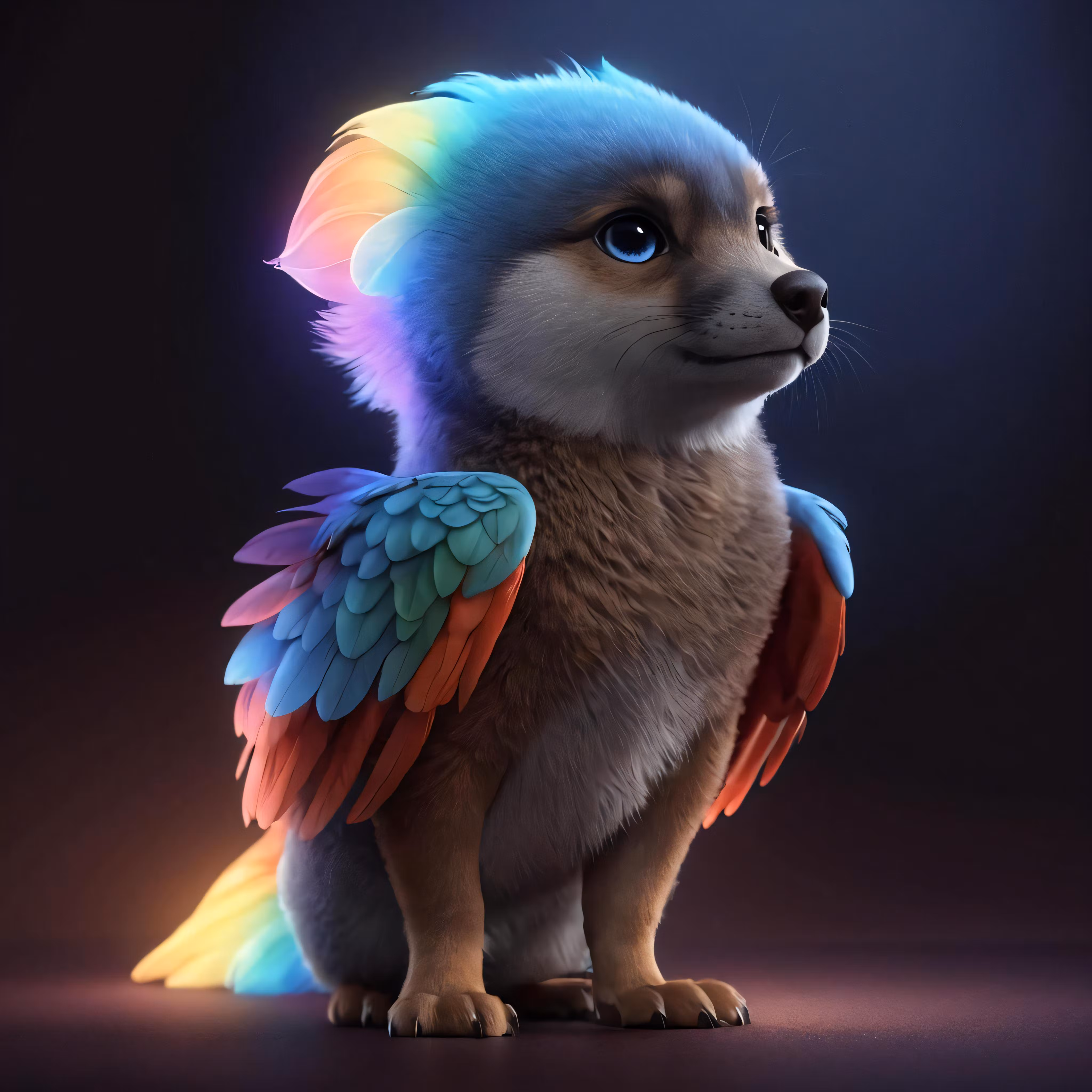 High resolution picture, free to use, an animal with bright wings sitting in the dark