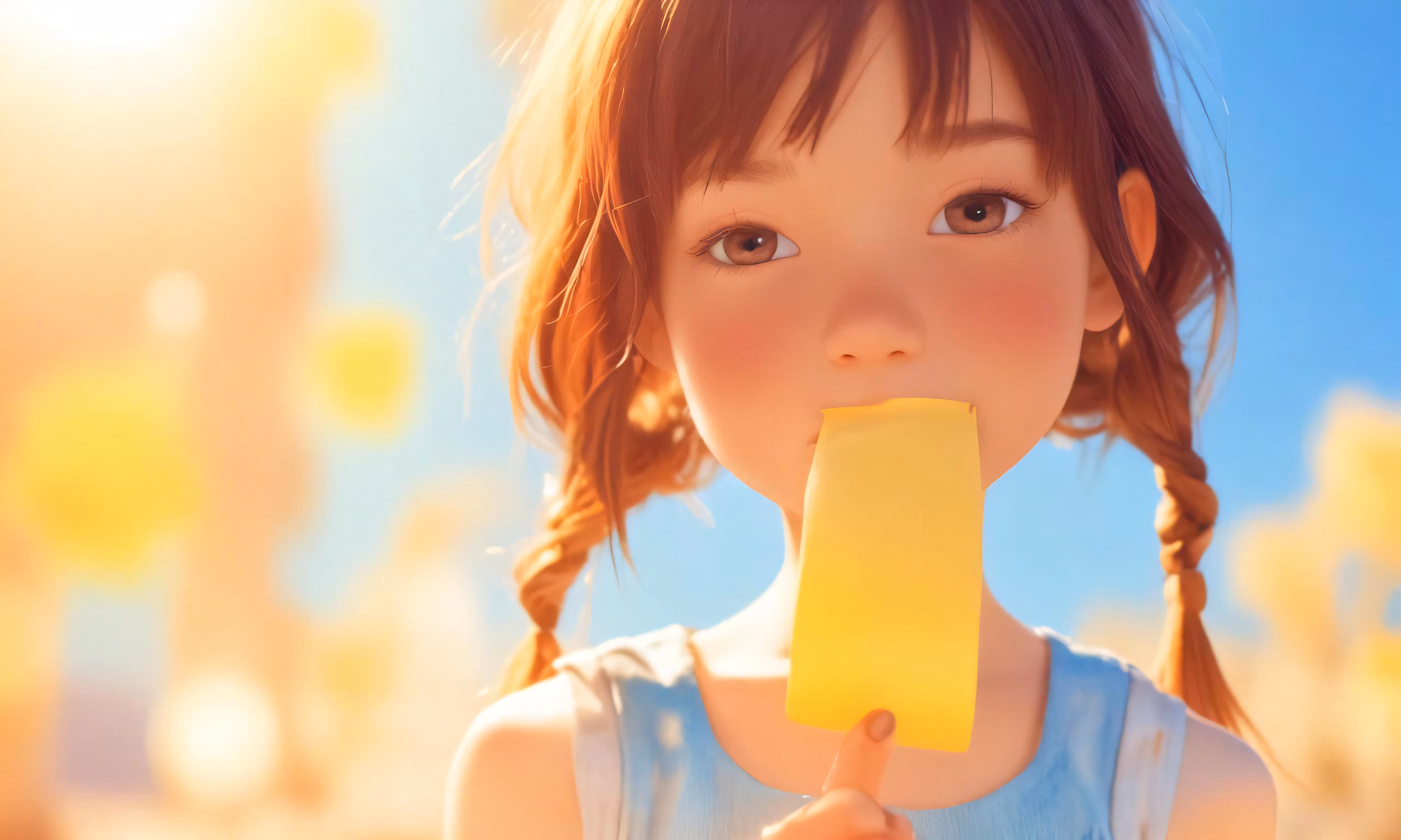 High resolution picture, free to use, an animated animated girl with a yellow popsicle