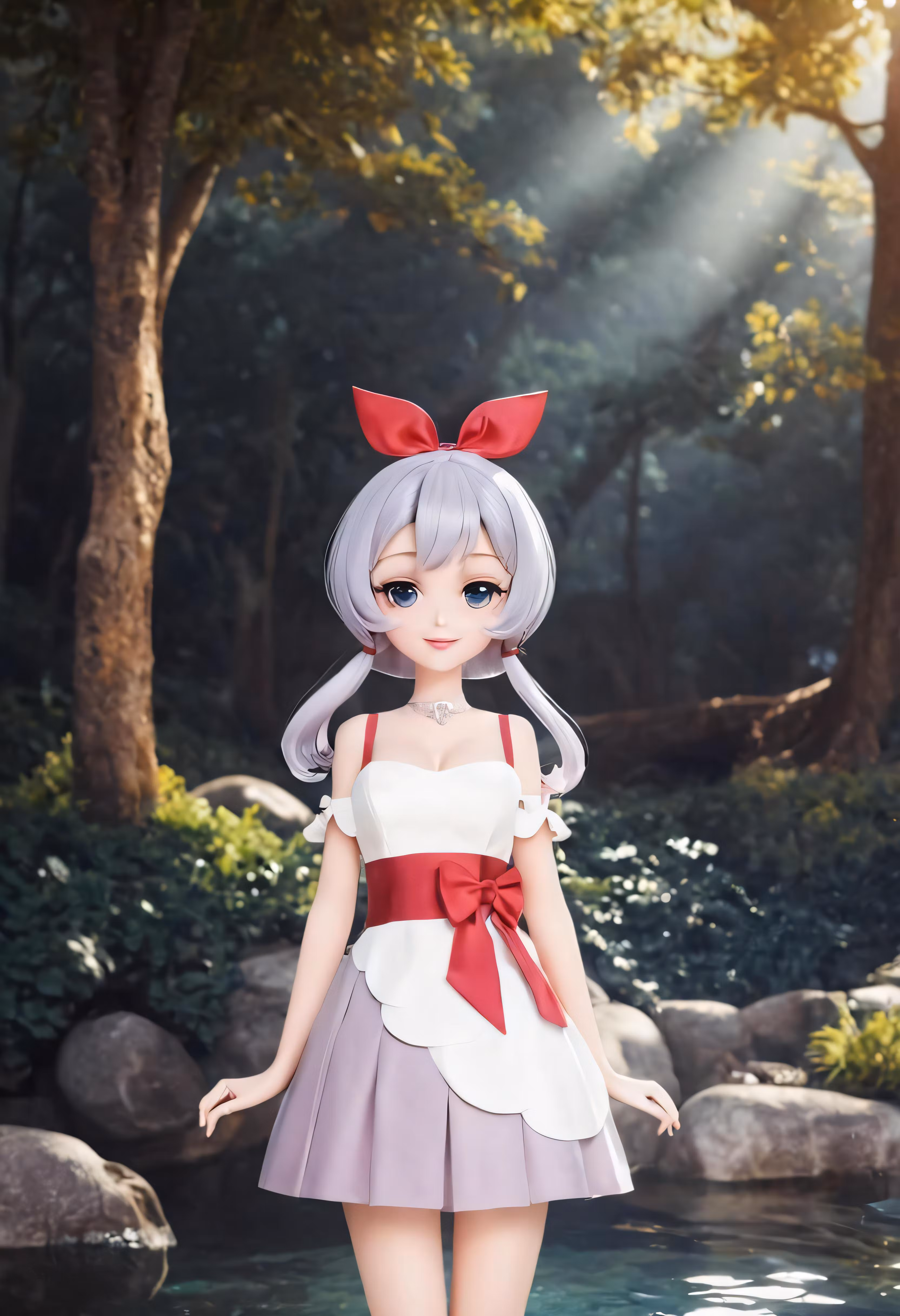 High resolution picture, free to use, an animated character is standing by a body of water
