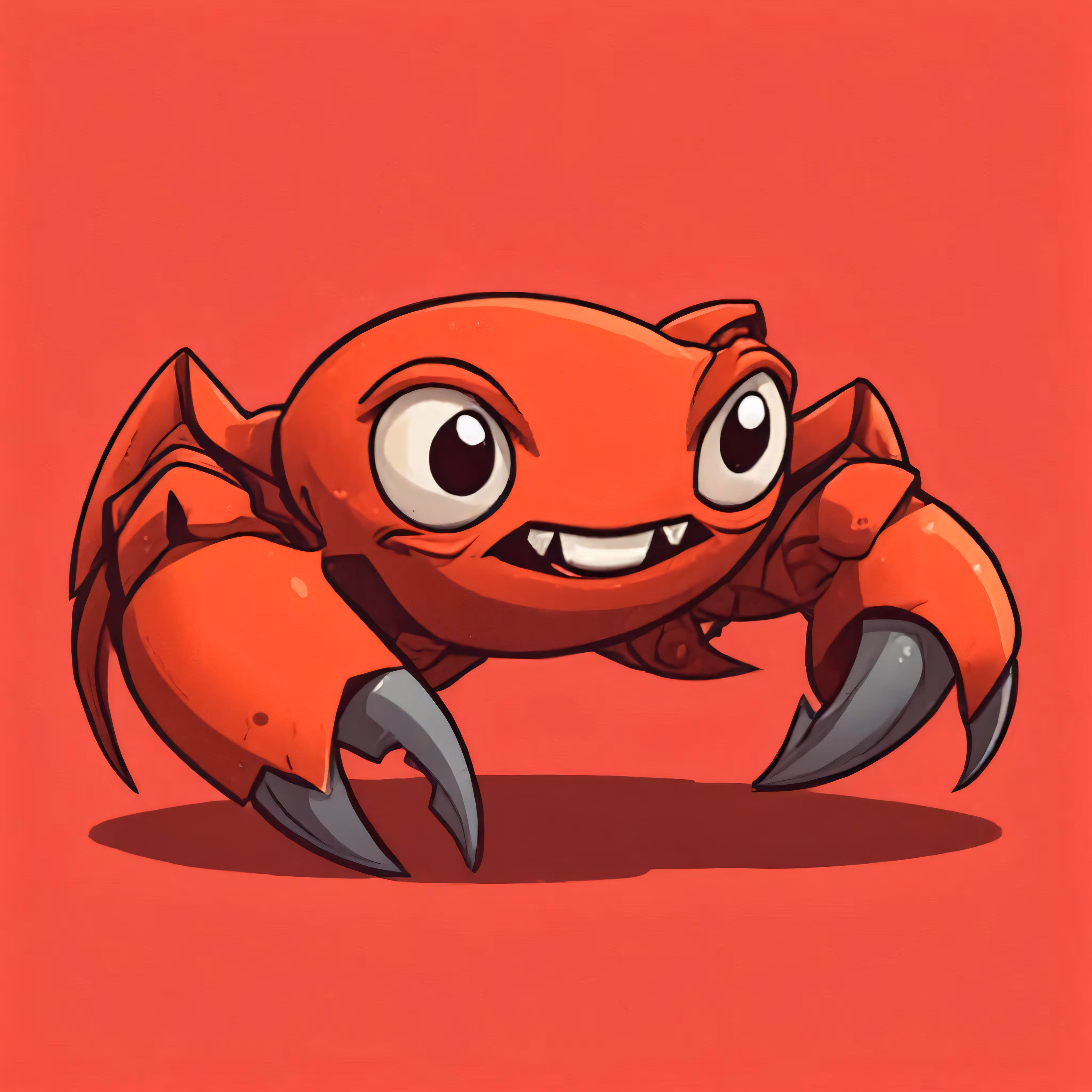 High resolution picture, free to use, an animated crab with huge eyes and claws on red background