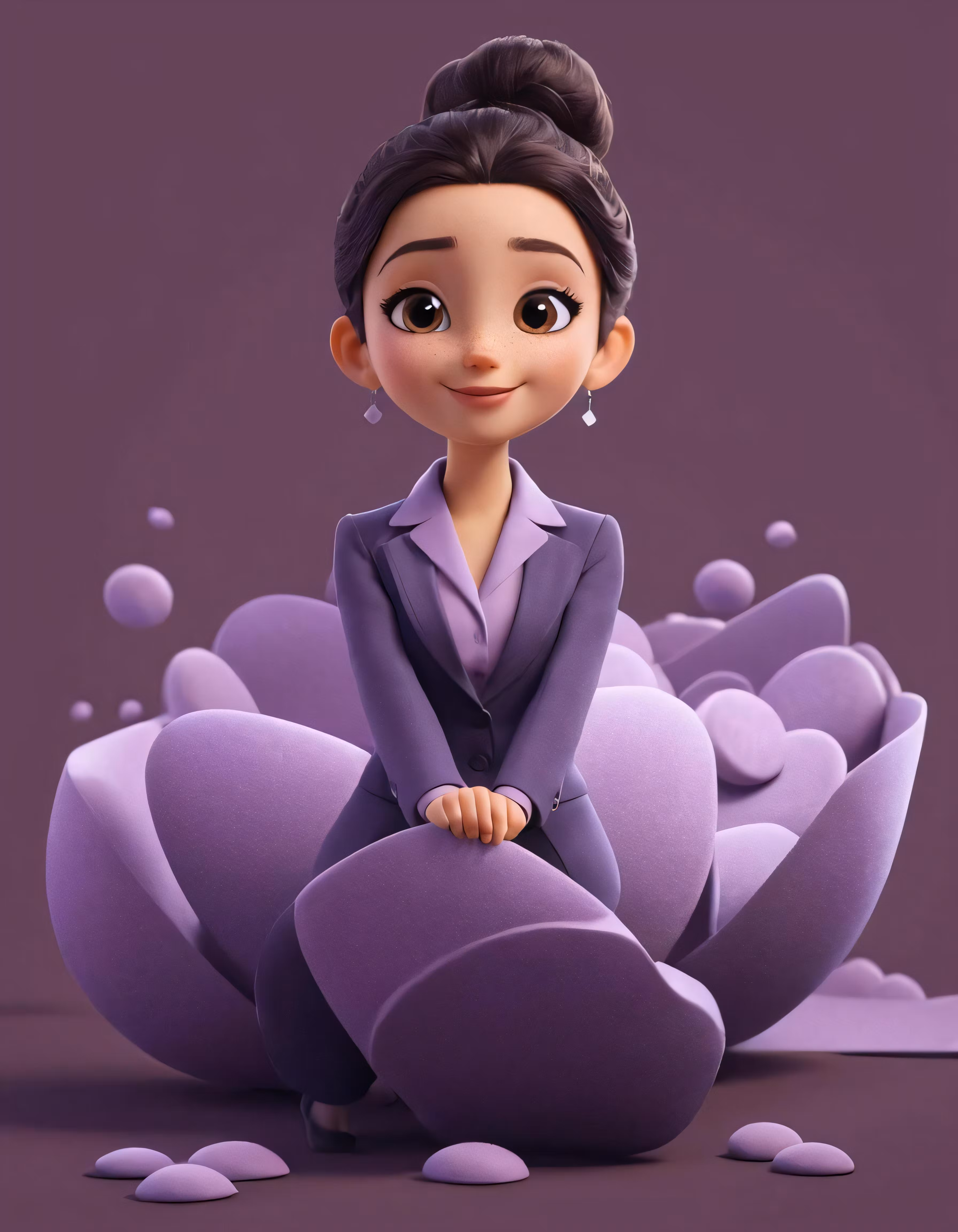 High resolution picture, free to use, an animated image of an asian woman dressed in purple