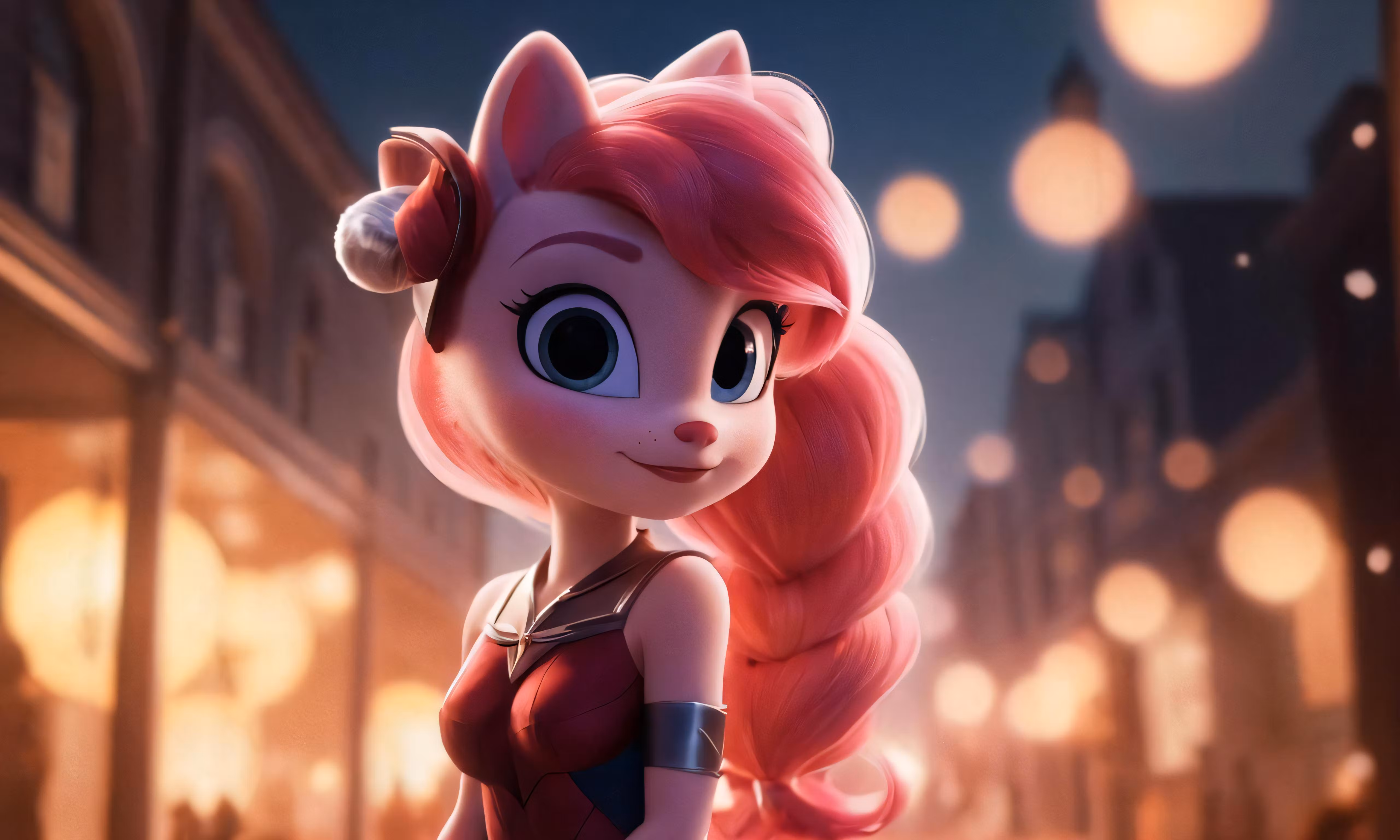 High resolution picture, free to use, an animated pink haired girl is on the street