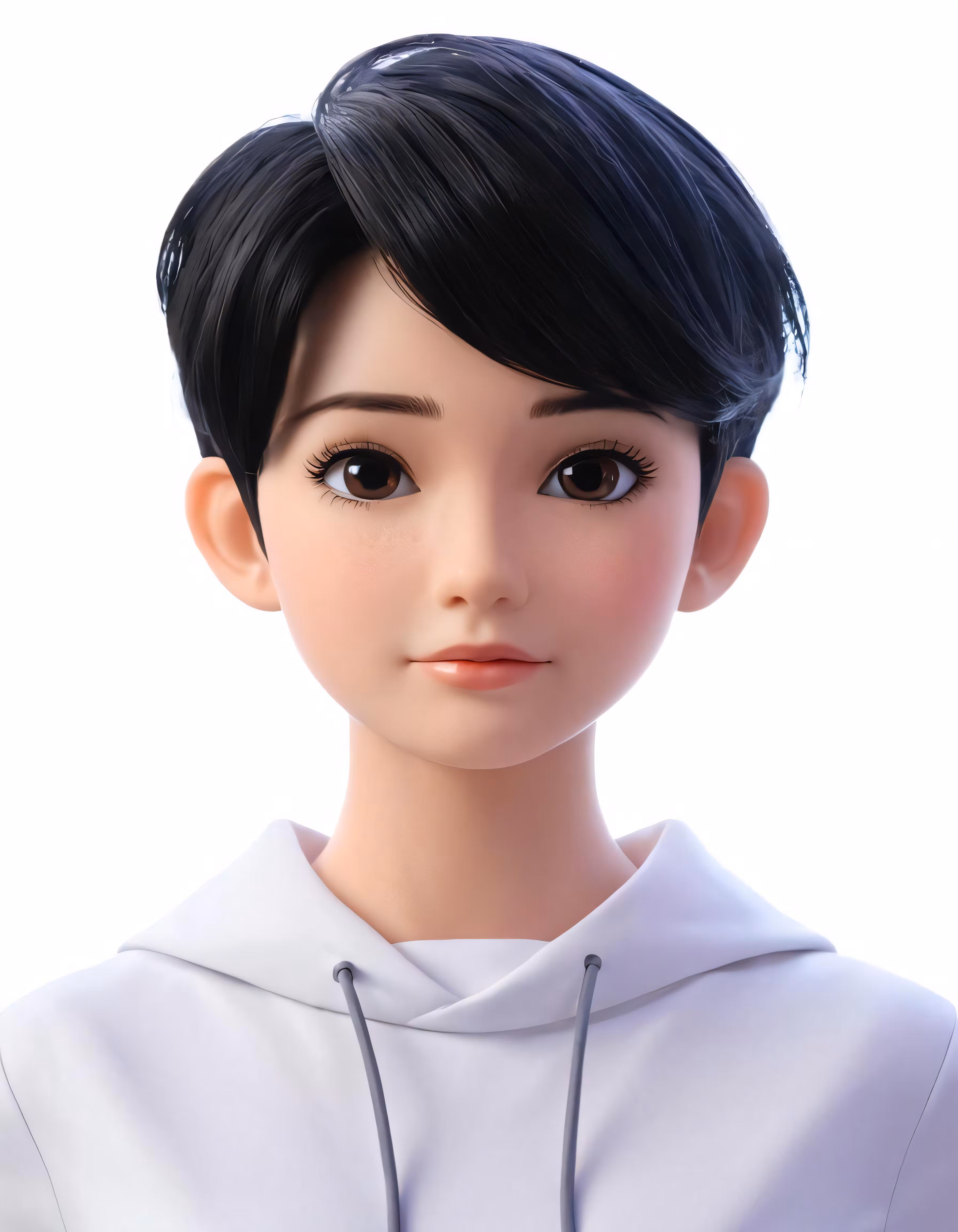 High resolution picture, free to use, an animation girl with black hair and blue eyes