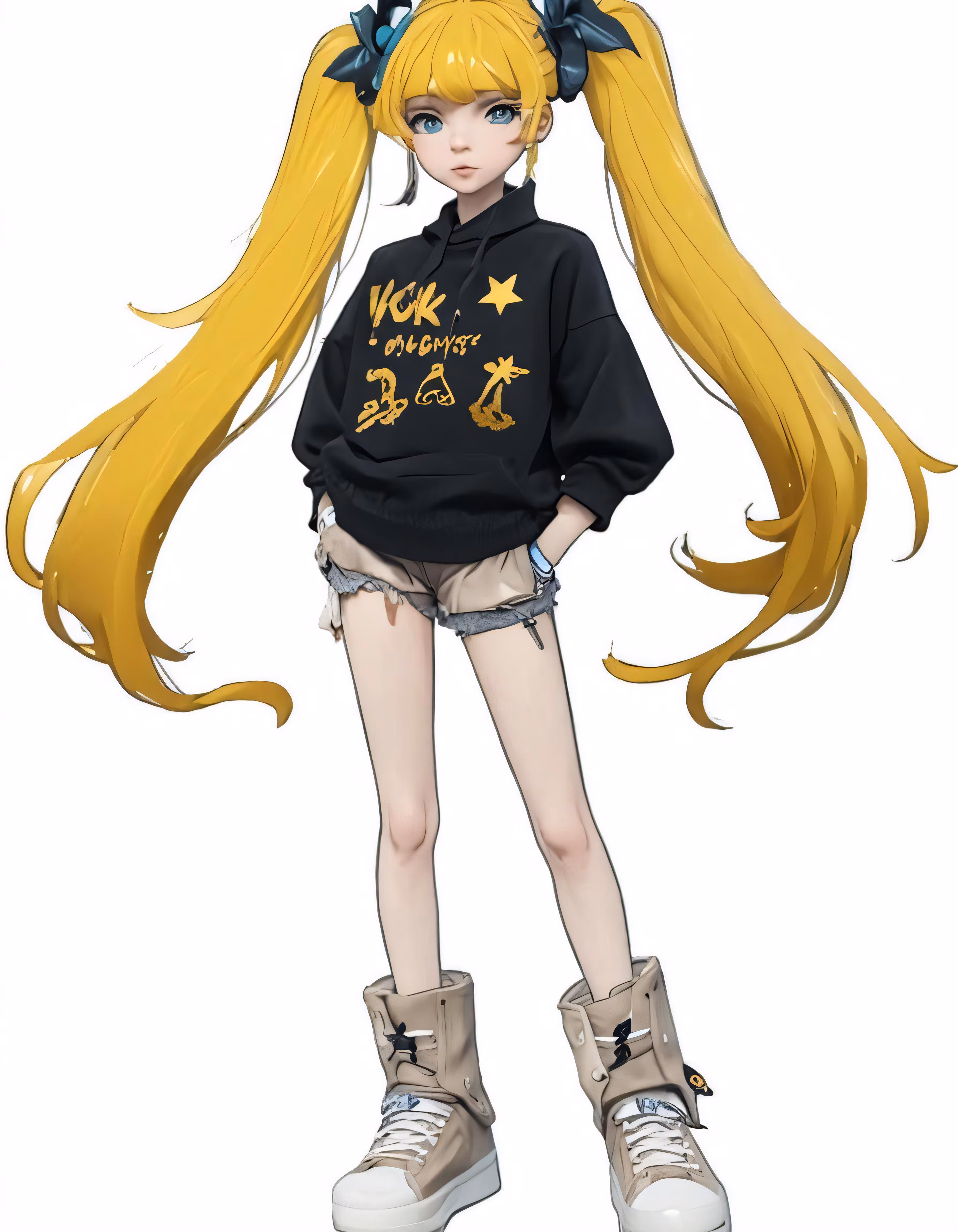 High resolution picture, free to use, an anime character with long blonde hair standing on the ground