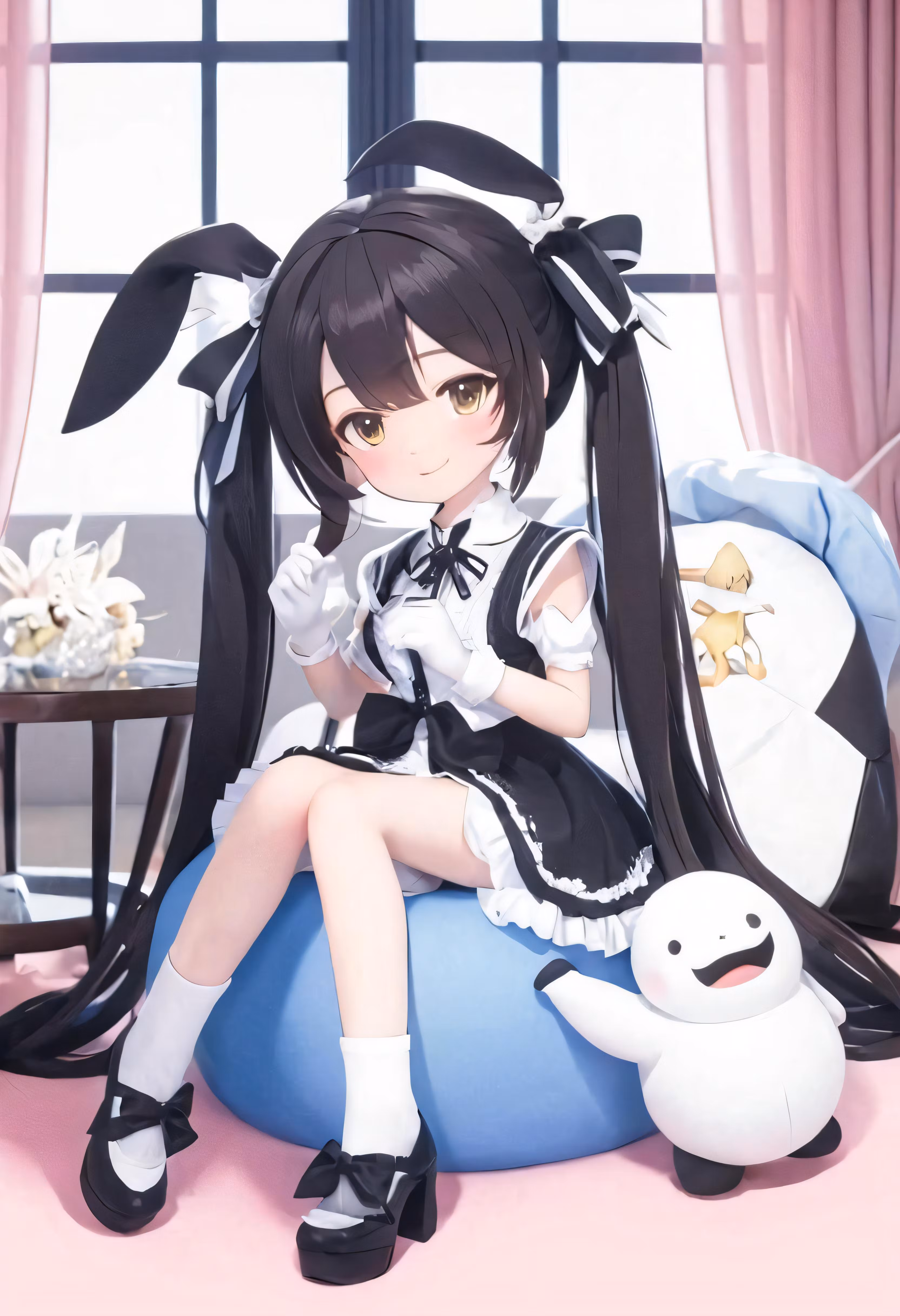 High resolution picture, free to use, an anime girl sitting on top of a cushion