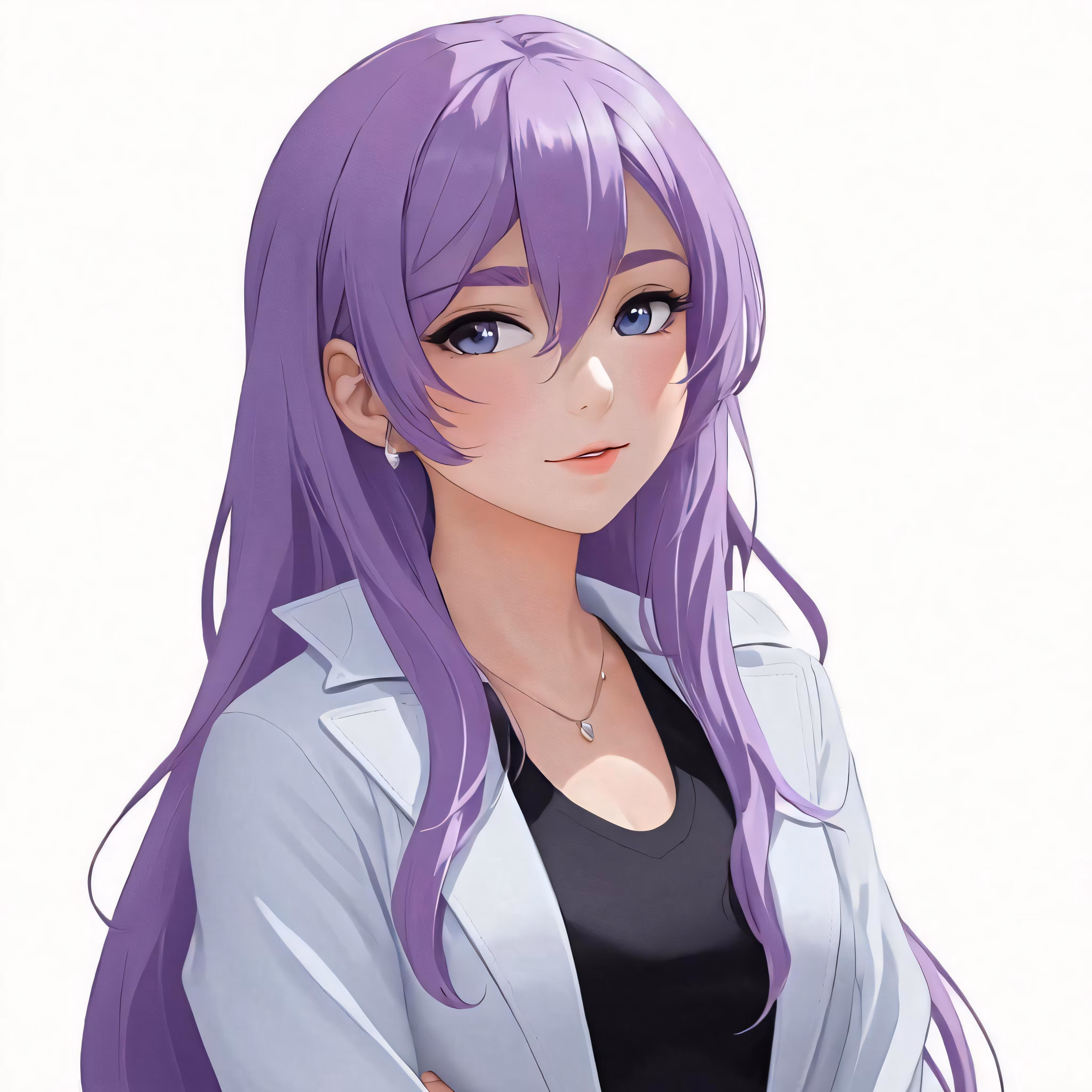 High resolution picture, free to use, an anime girl with long purple hair and a black shirt