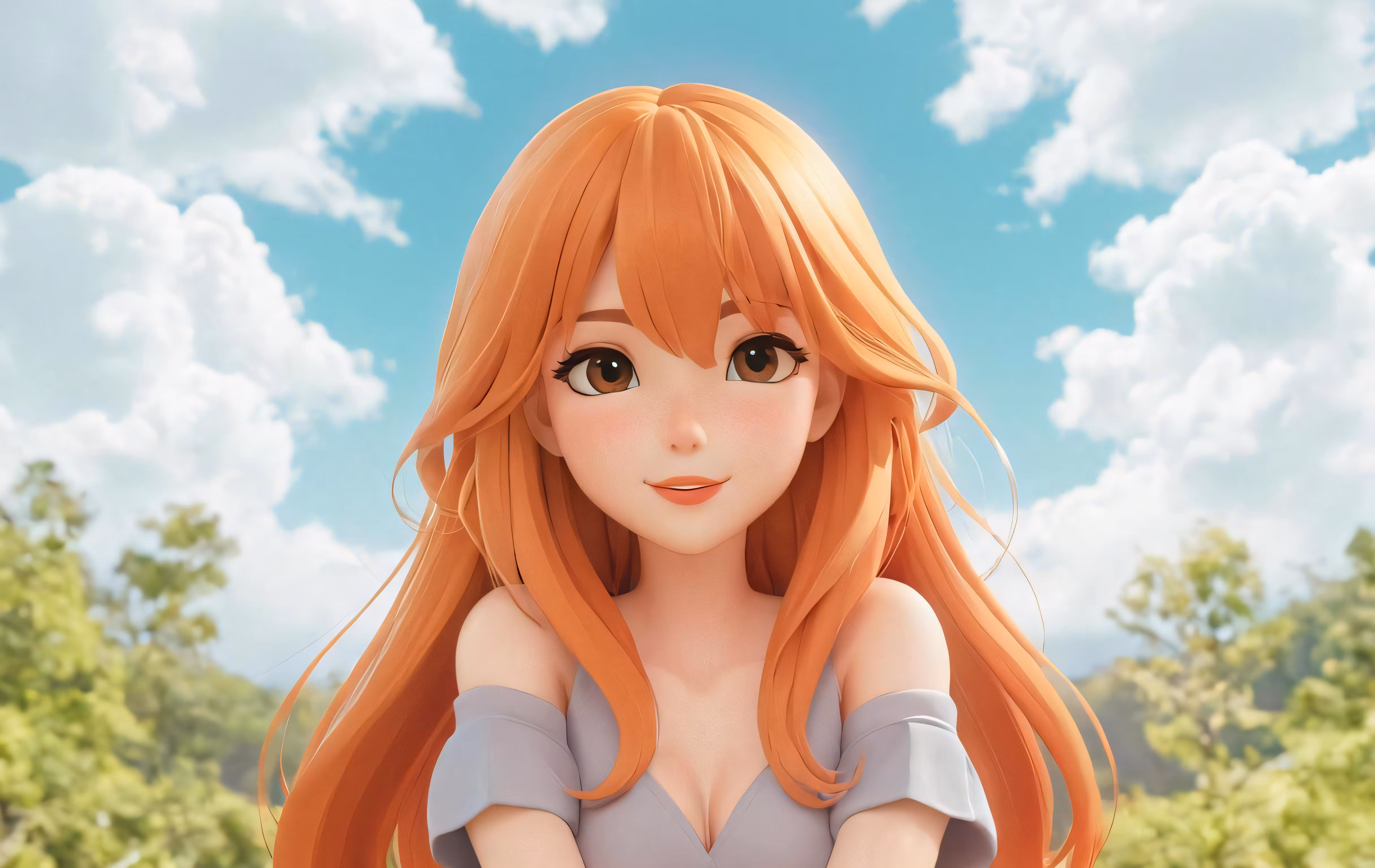 High resolution picture, free to use, an anime girl with long red hair sitting on the ground