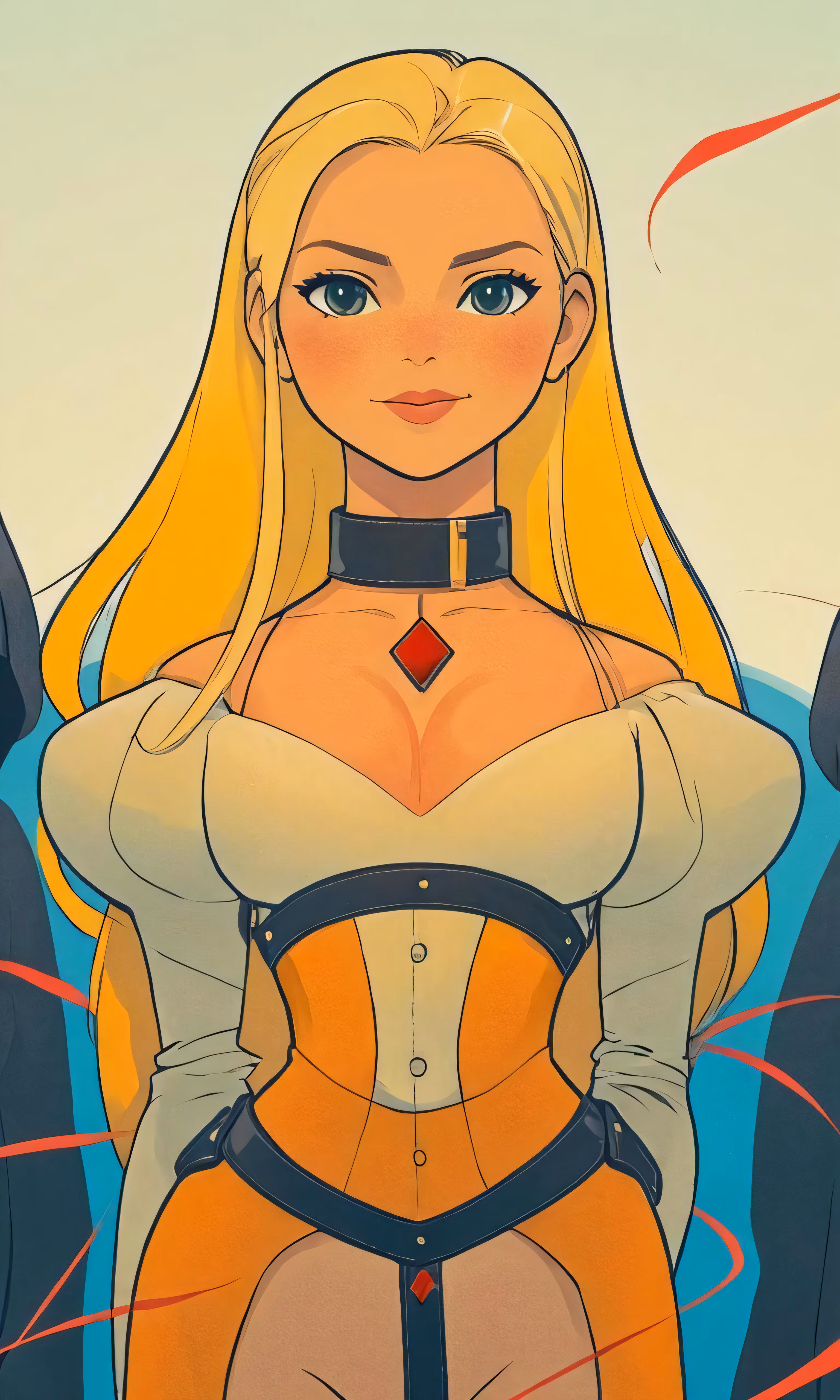 High resolution picture, free to use, an anime picture with a woman in a yellow outfit