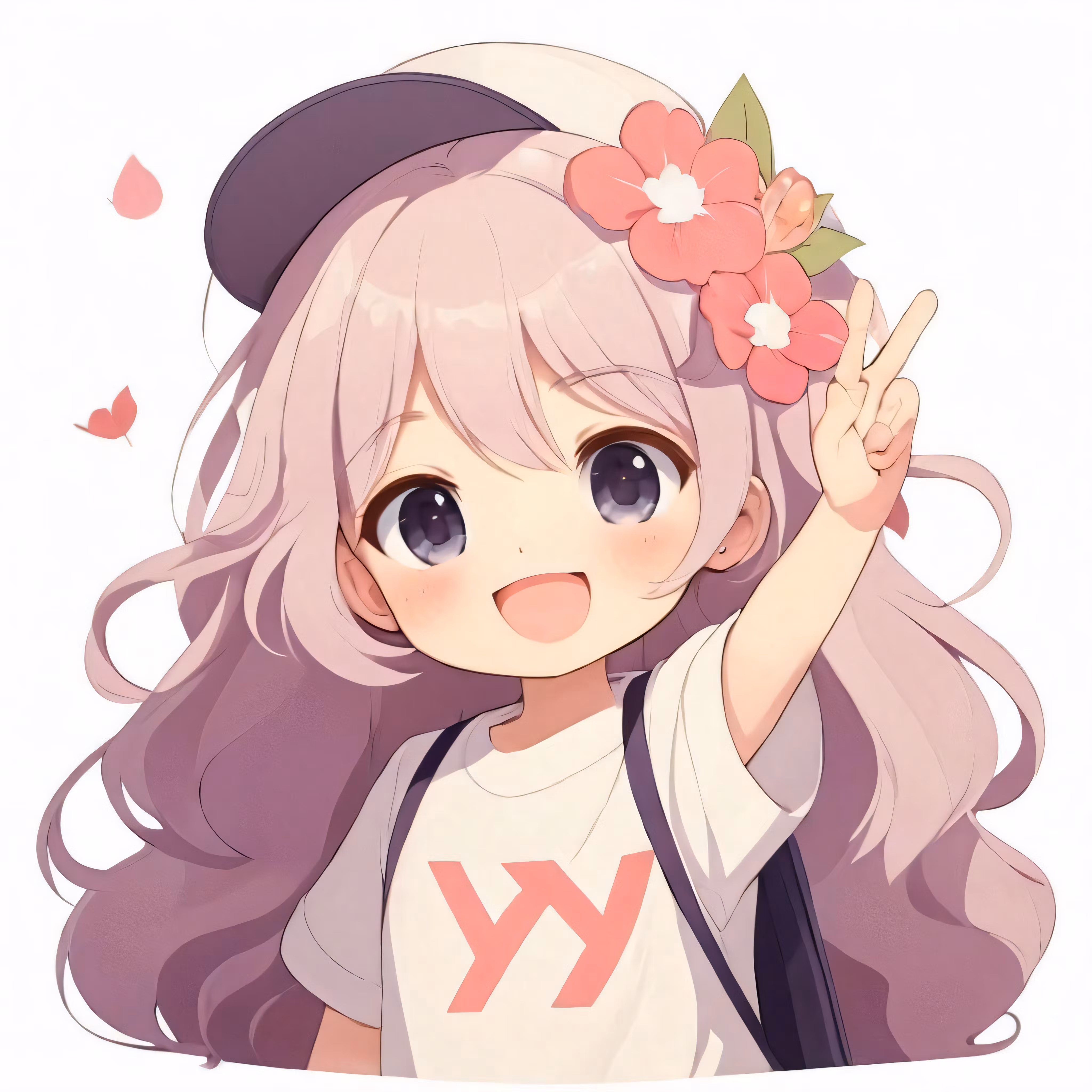 High resolution picture, free to use, an anime style girl with pink hair and flowers