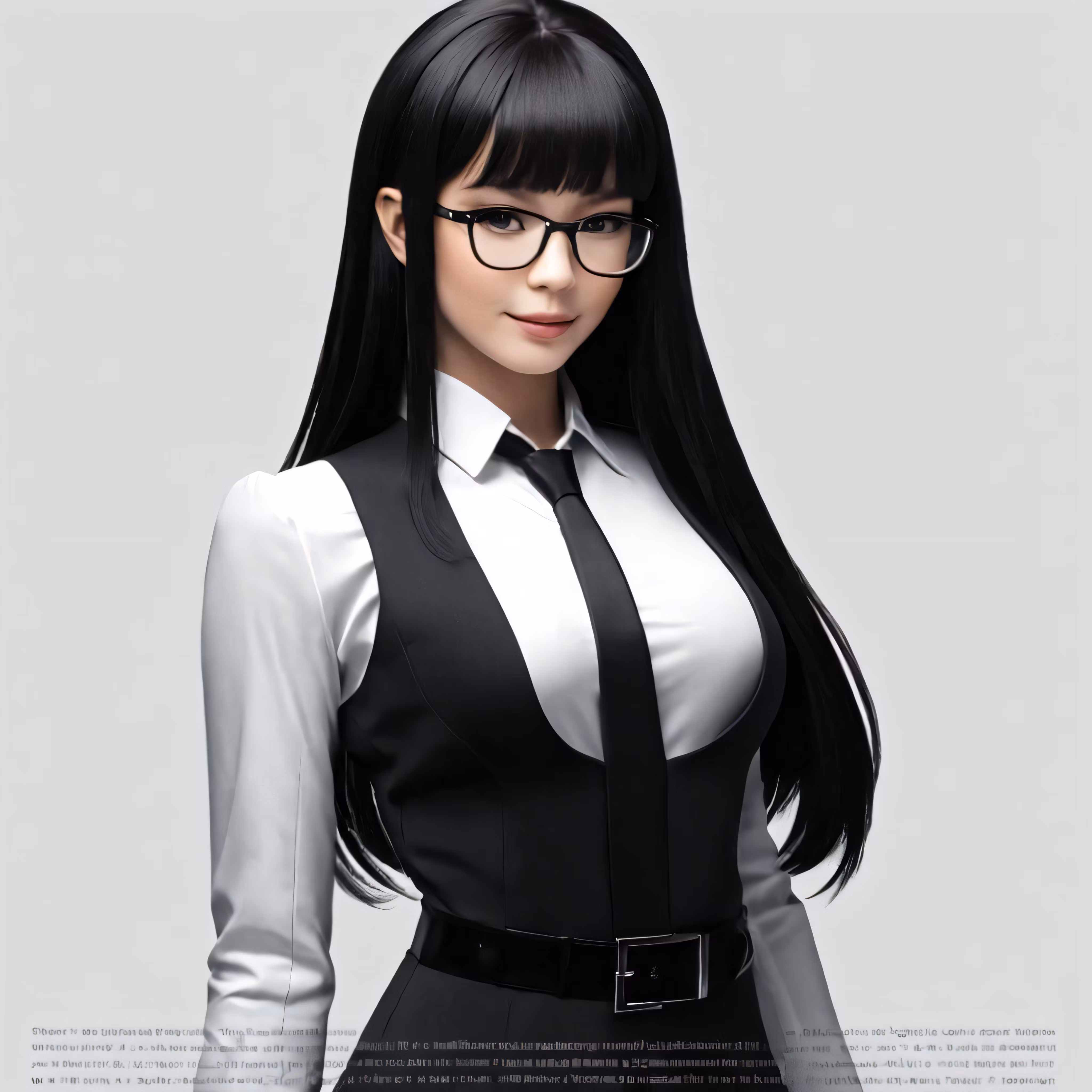 High resolution picture, free to use, an anime woman wearing glasses and a tie