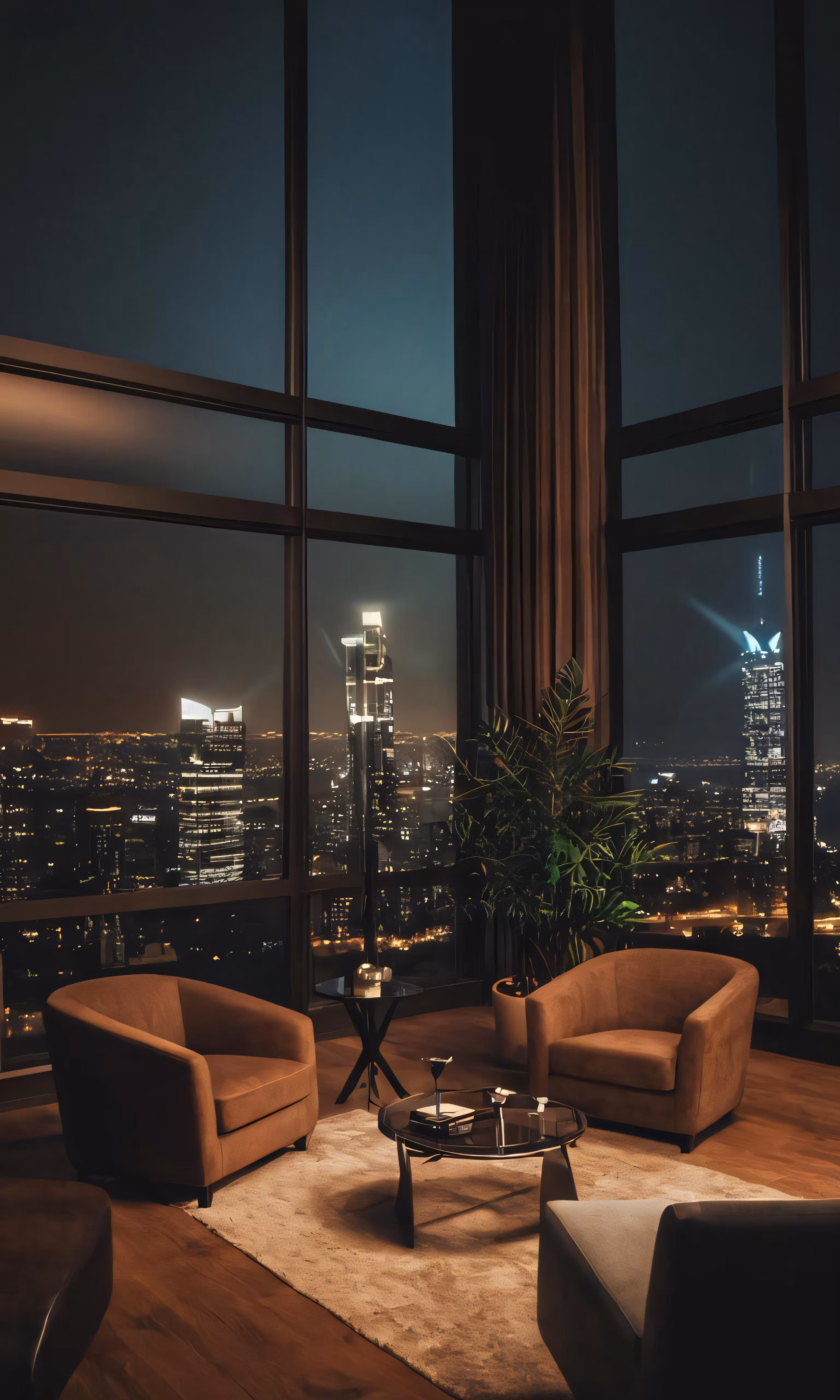 High resolution picture, free to use, an apartment living room features two sofas, a coffee table and big windows