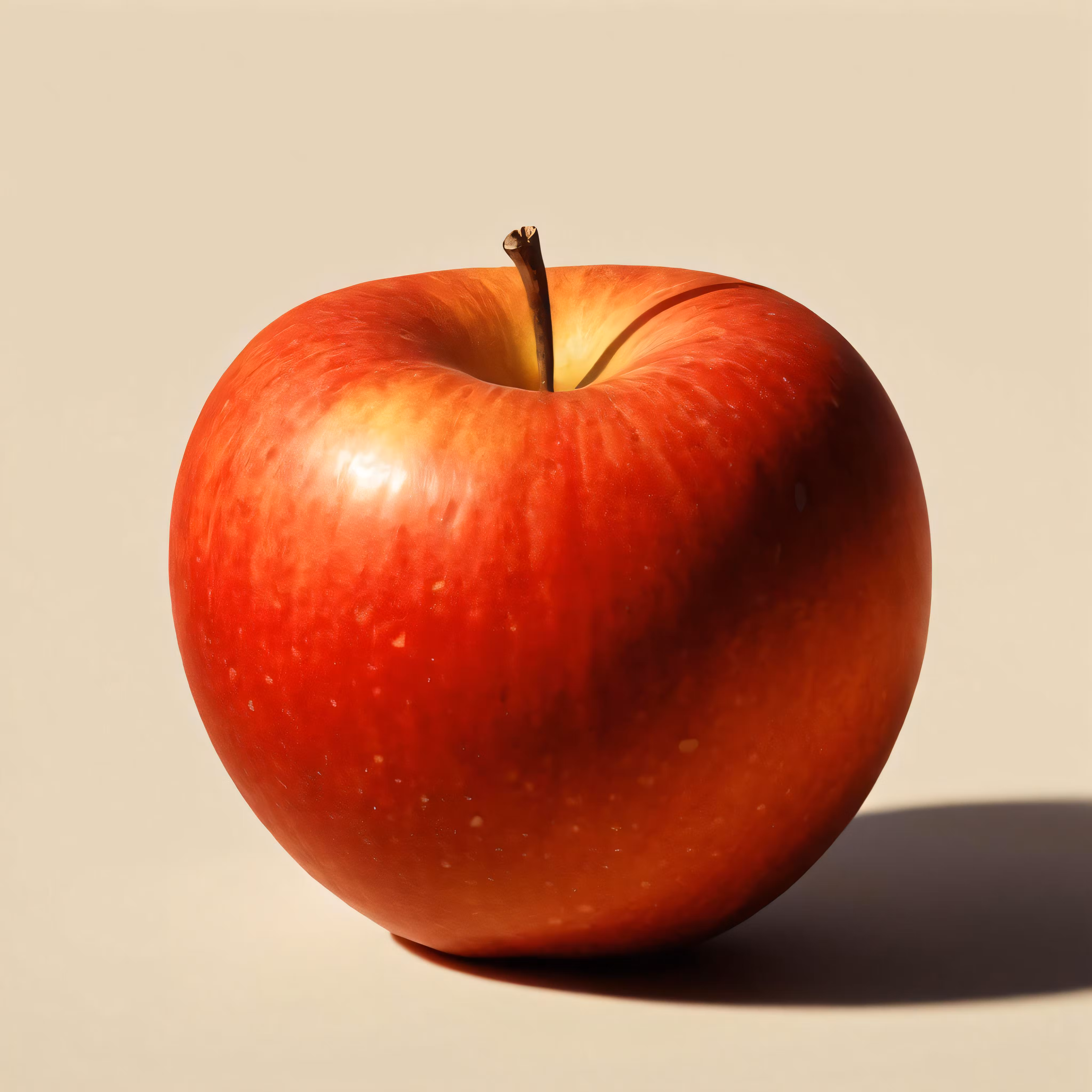 High resolution picture, free to use, an apple casting a shadow on a neutral backdrop