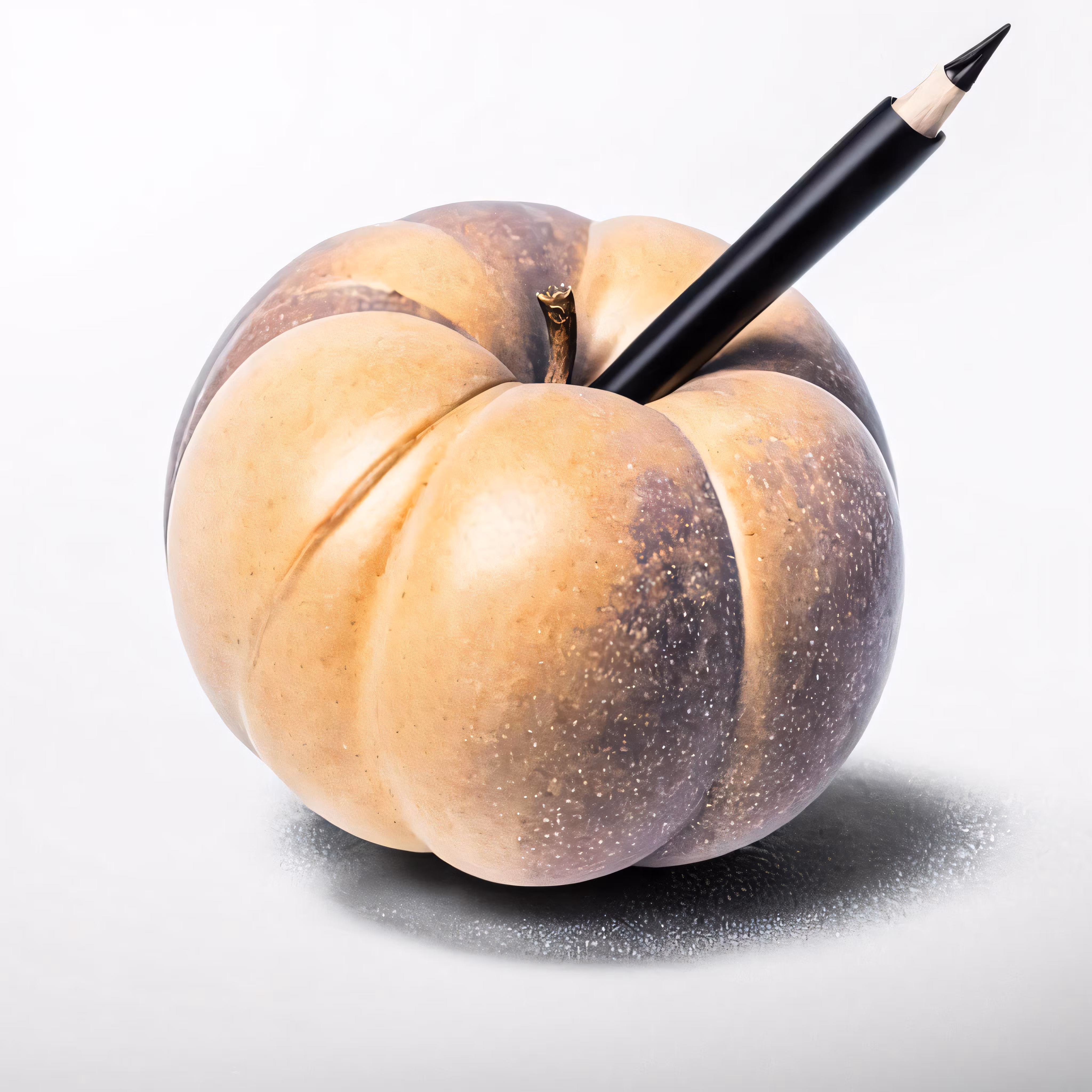 High resolution picture, free to use, an apple has a black pen sticking out of it