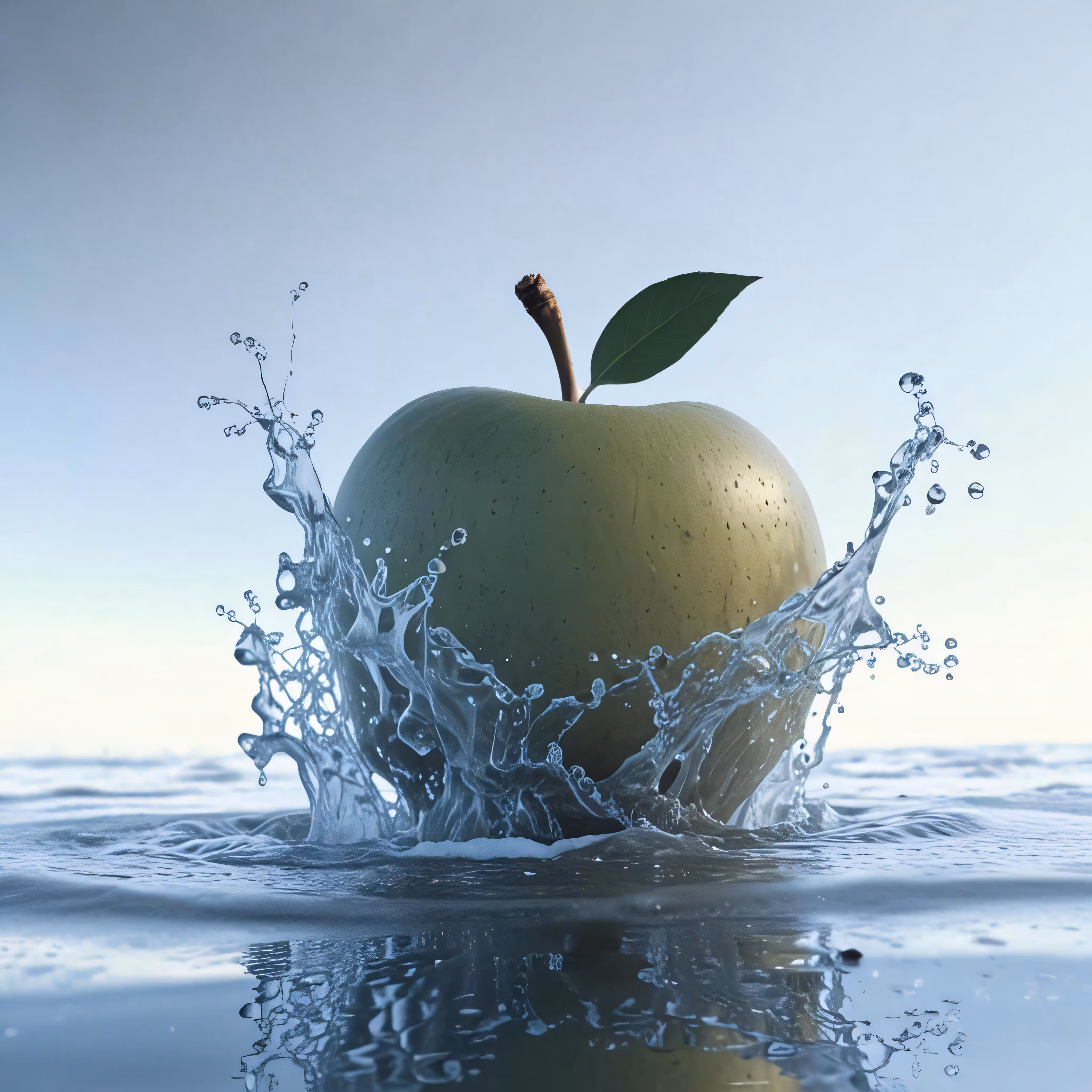 High resolution picture, free to use, an apple is being splashed with water and on the edge