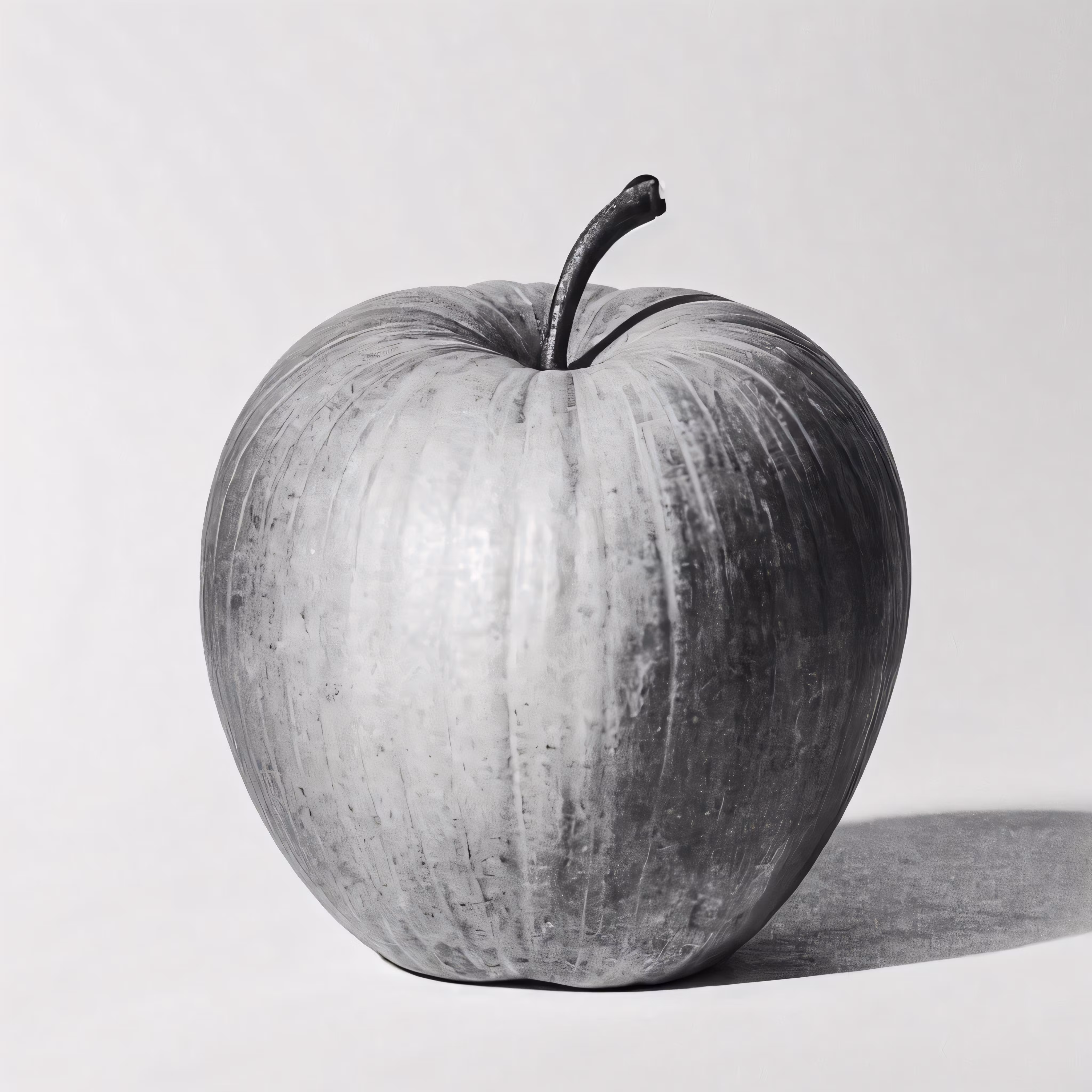 High resolution picture, free to use, an apple is shown on the ground in black and white