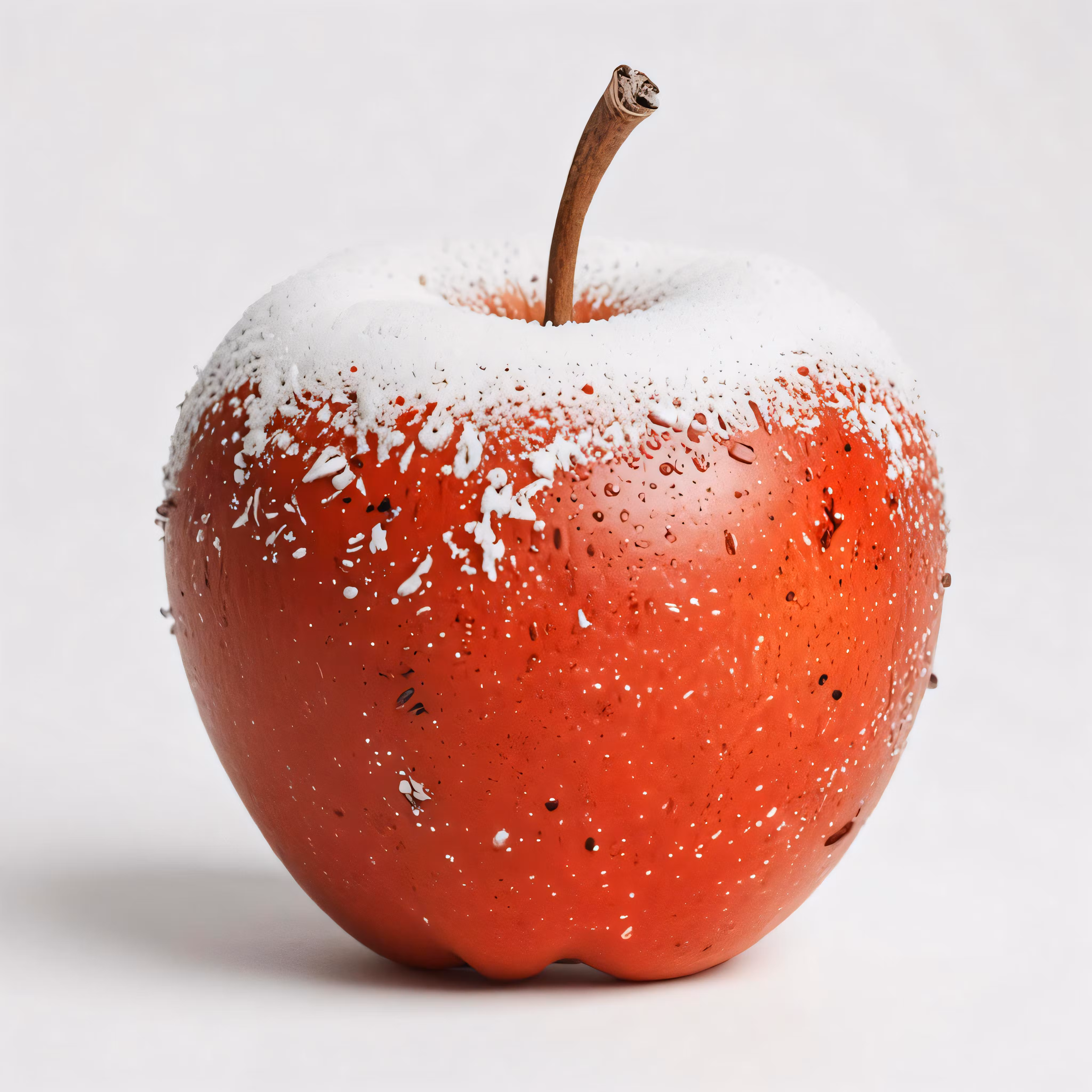 High resolution picture, free to use, an apple that has just been bitten off is covered in snow