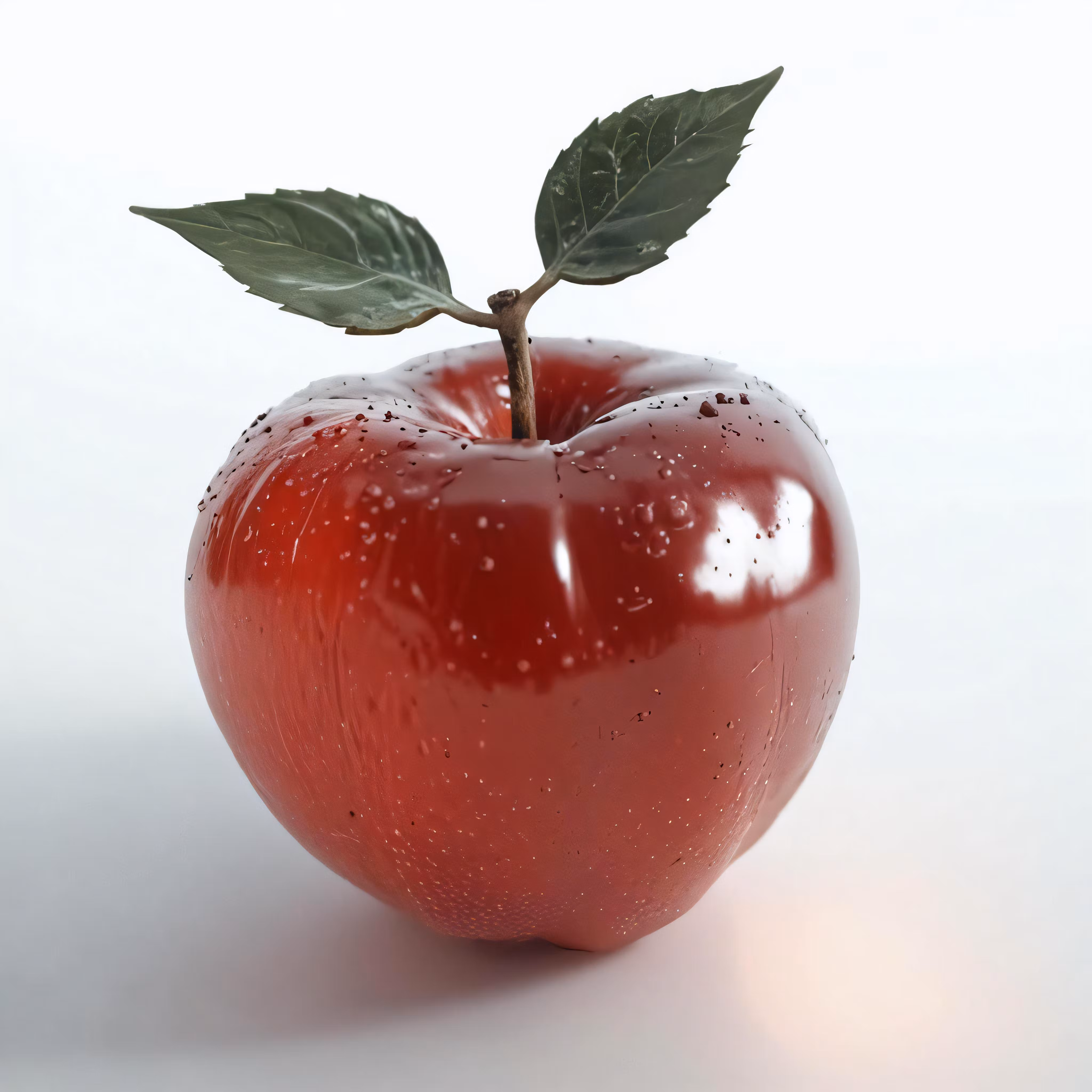 High resolution picture, free to use, an apple with a green leaf and water droplets