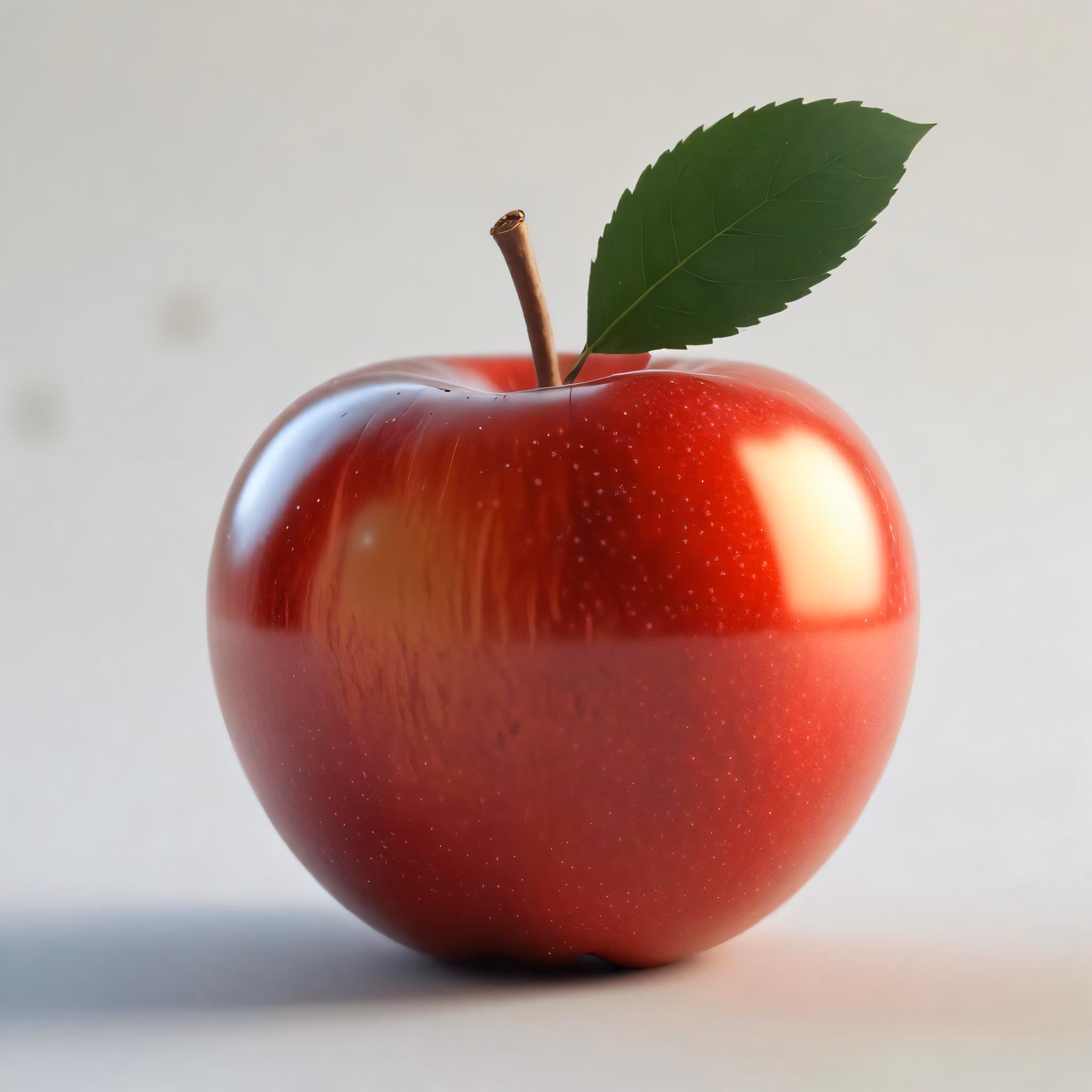 High resolution picture, free to use, an apple with a leaf on it is shown in the sunlight