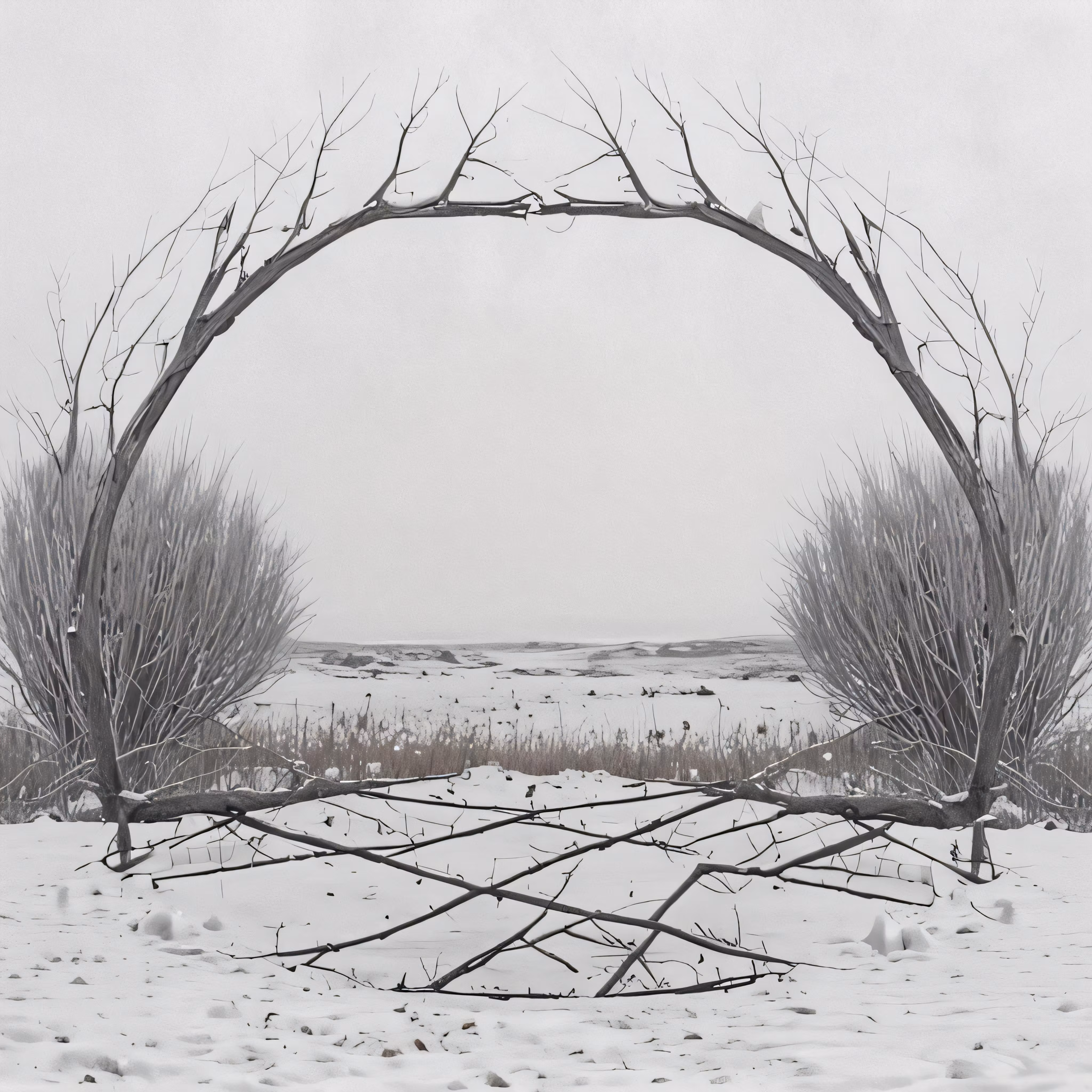 High resolution picture, free to use, an arch in the snow with a bird sitting on top