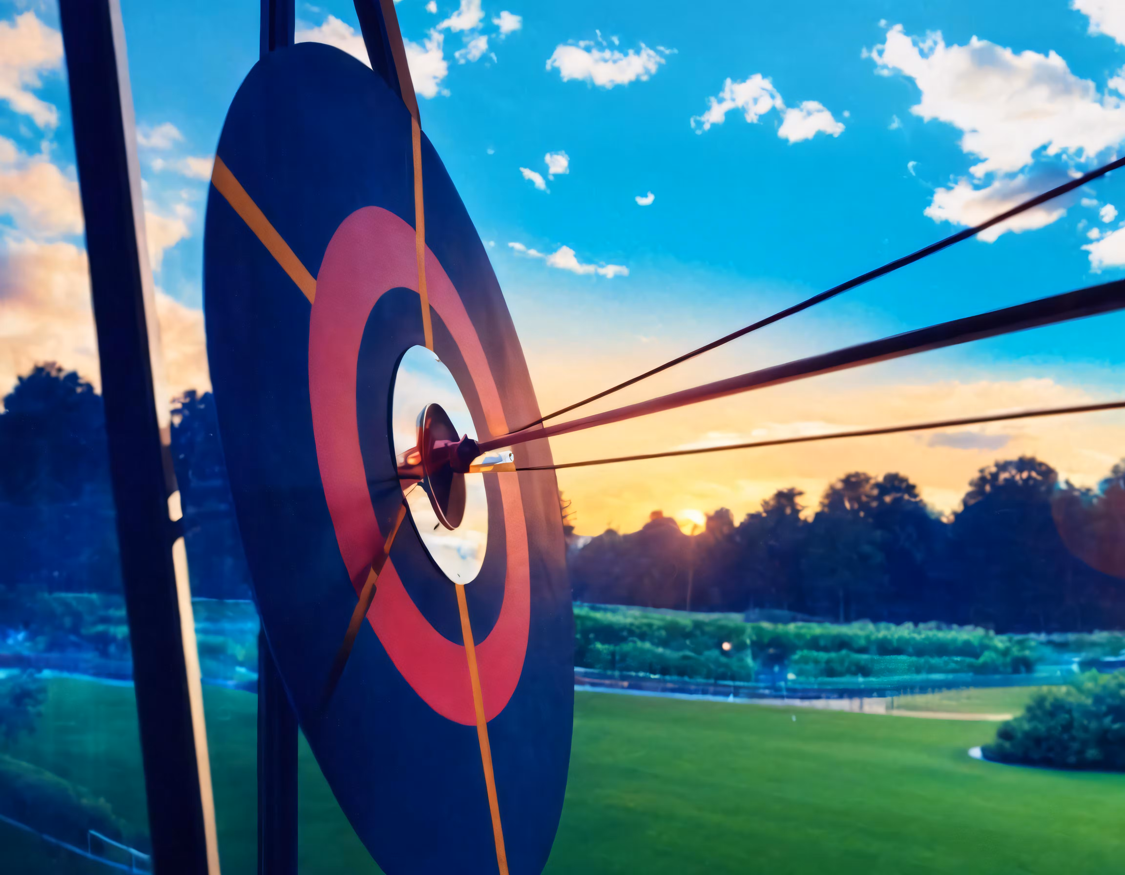 High resolution picture, free to use, an archery is aiming with a bright blue sky