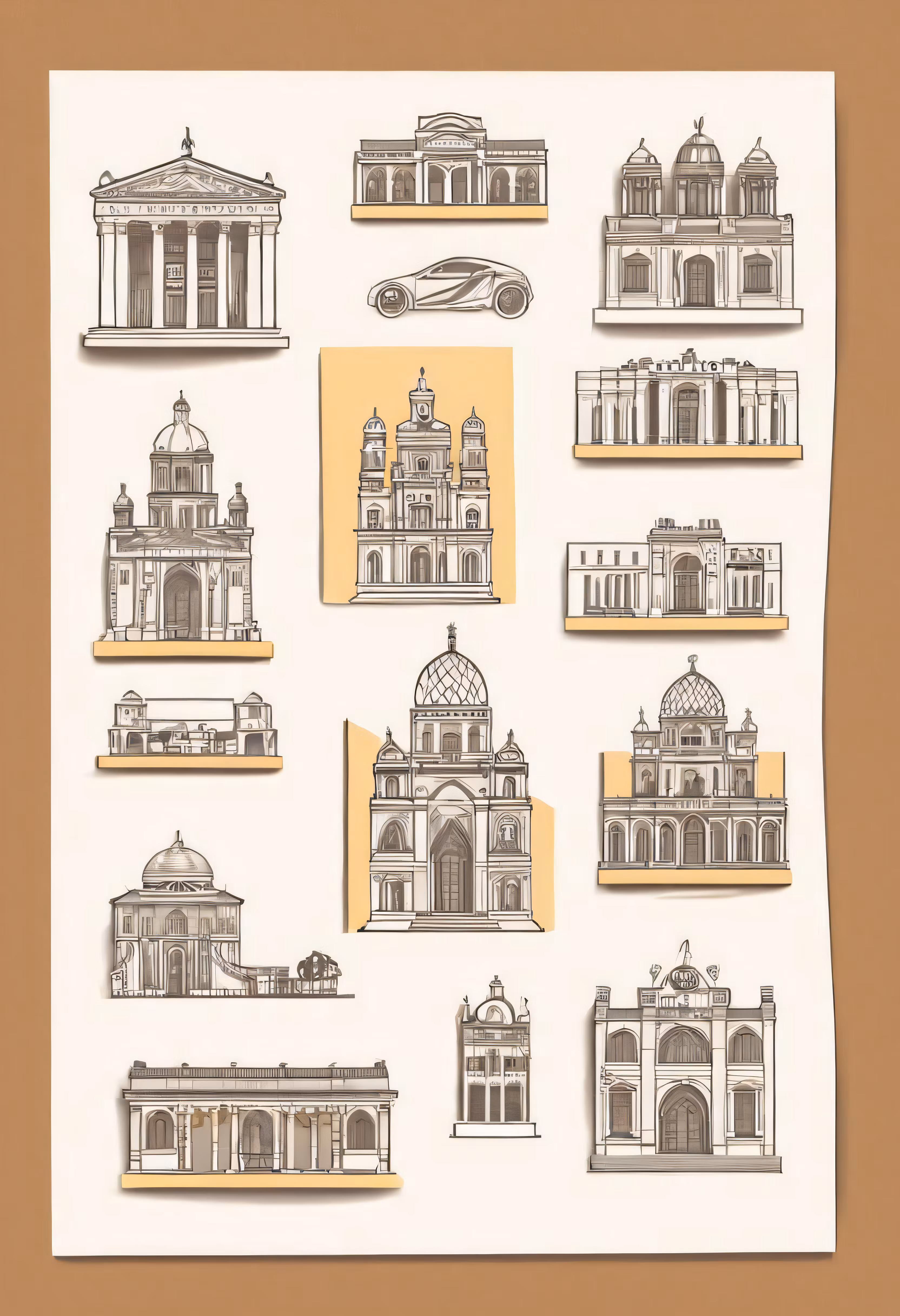 High resolution picture, free to use, an architectural book with many detailed architectural designs