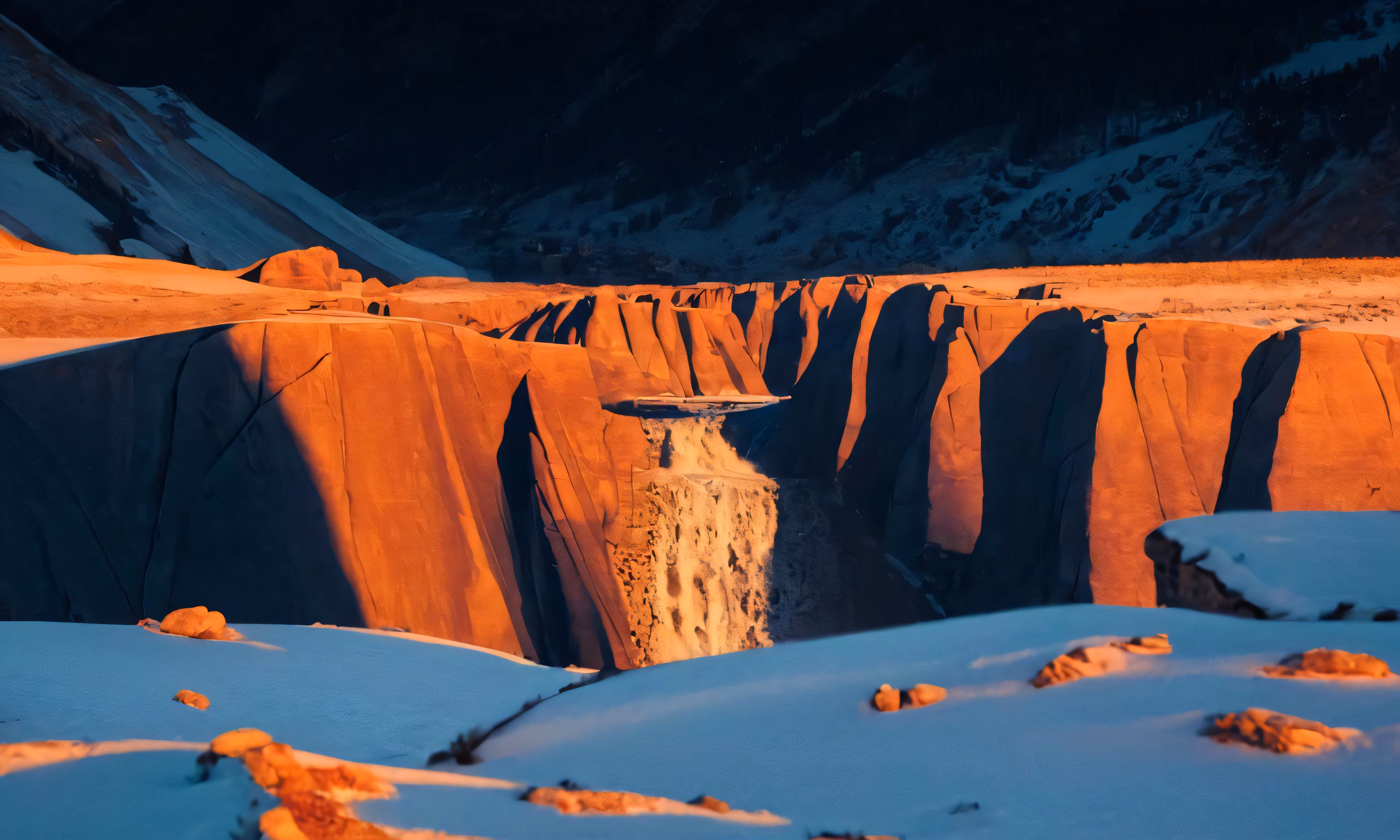 High resolution picture, free to use, an area with large rock formations and bright orange hue