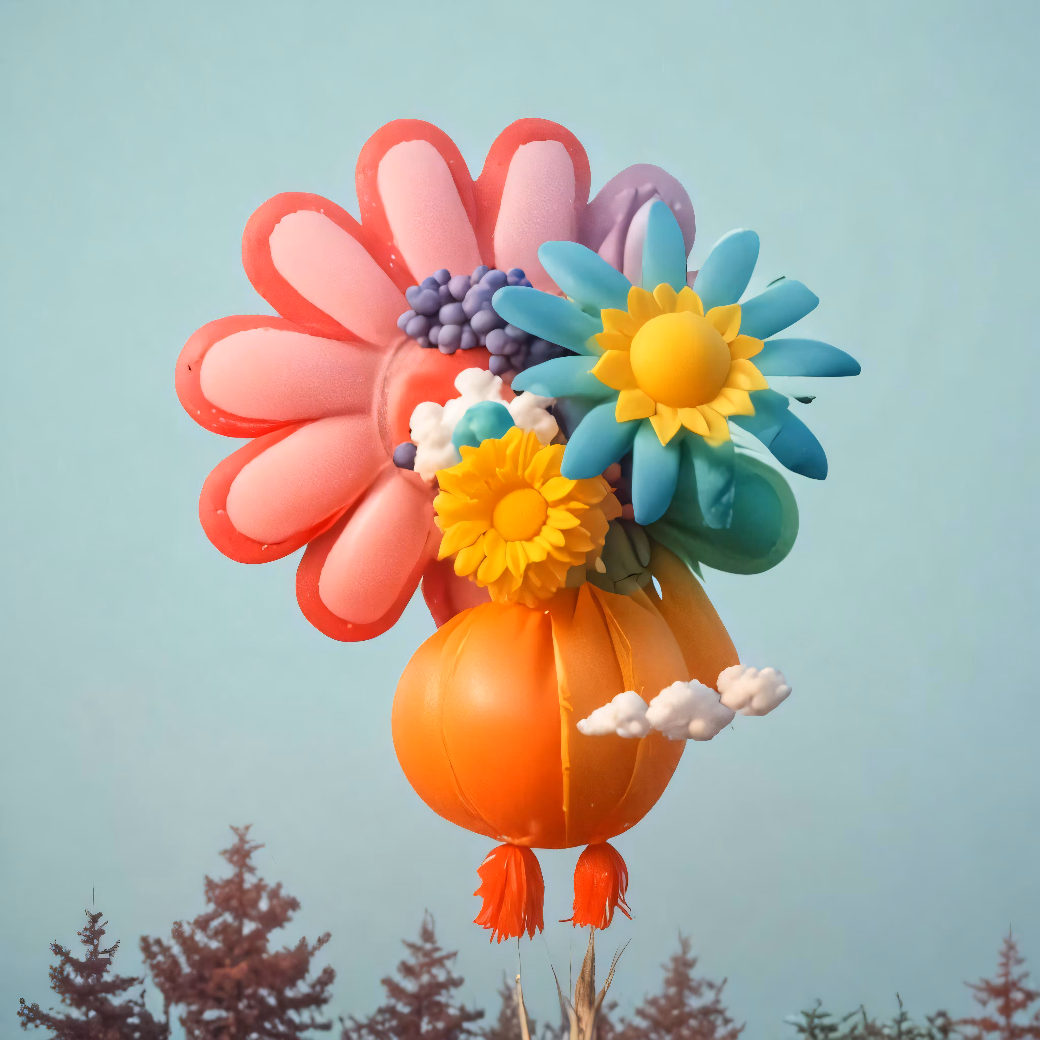High resolution picture, free to use, an arrangement of brightly colored flowers on top of an inflatable object