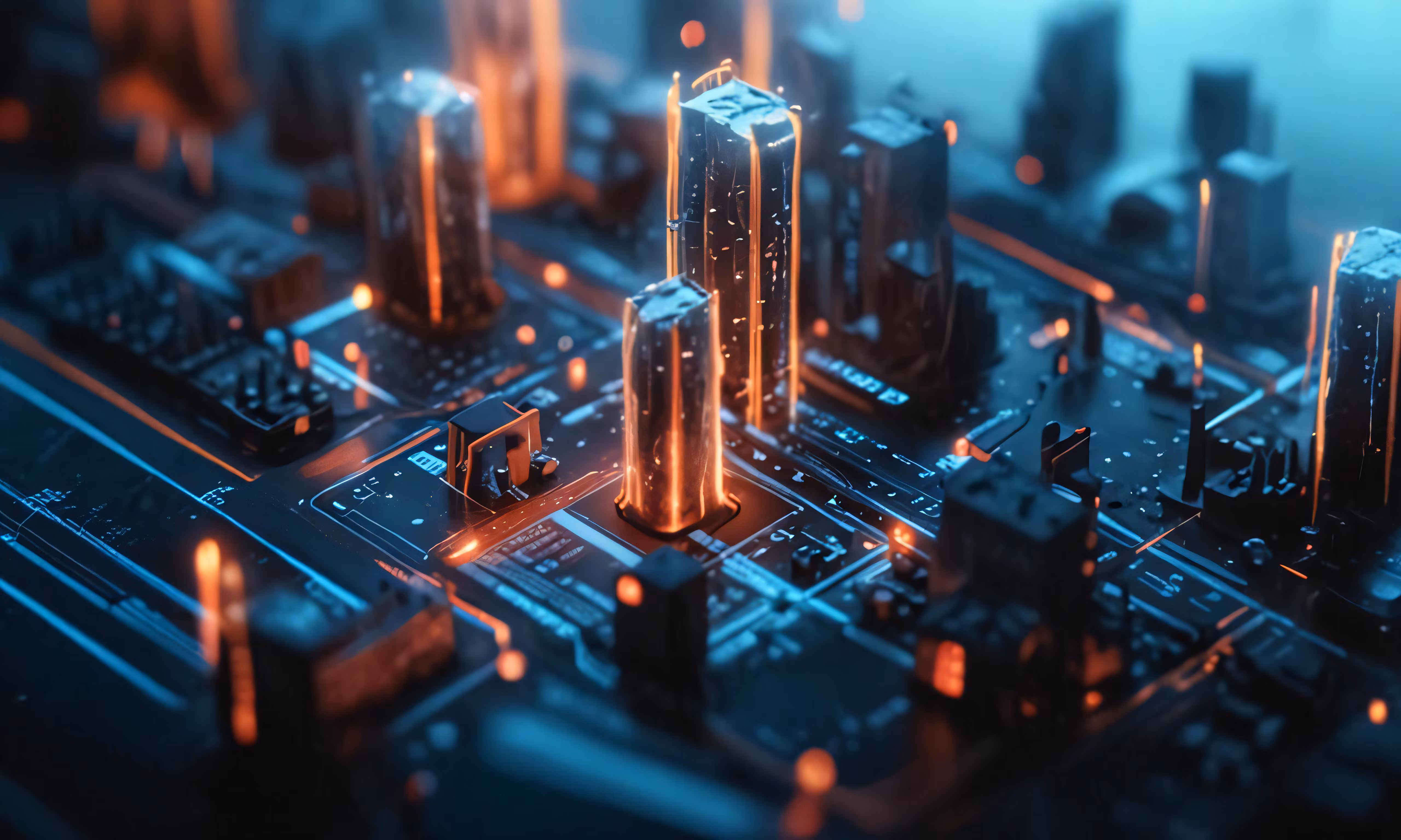 High resolution picture, free to use, an array of futuristic electronic devices with red lights
