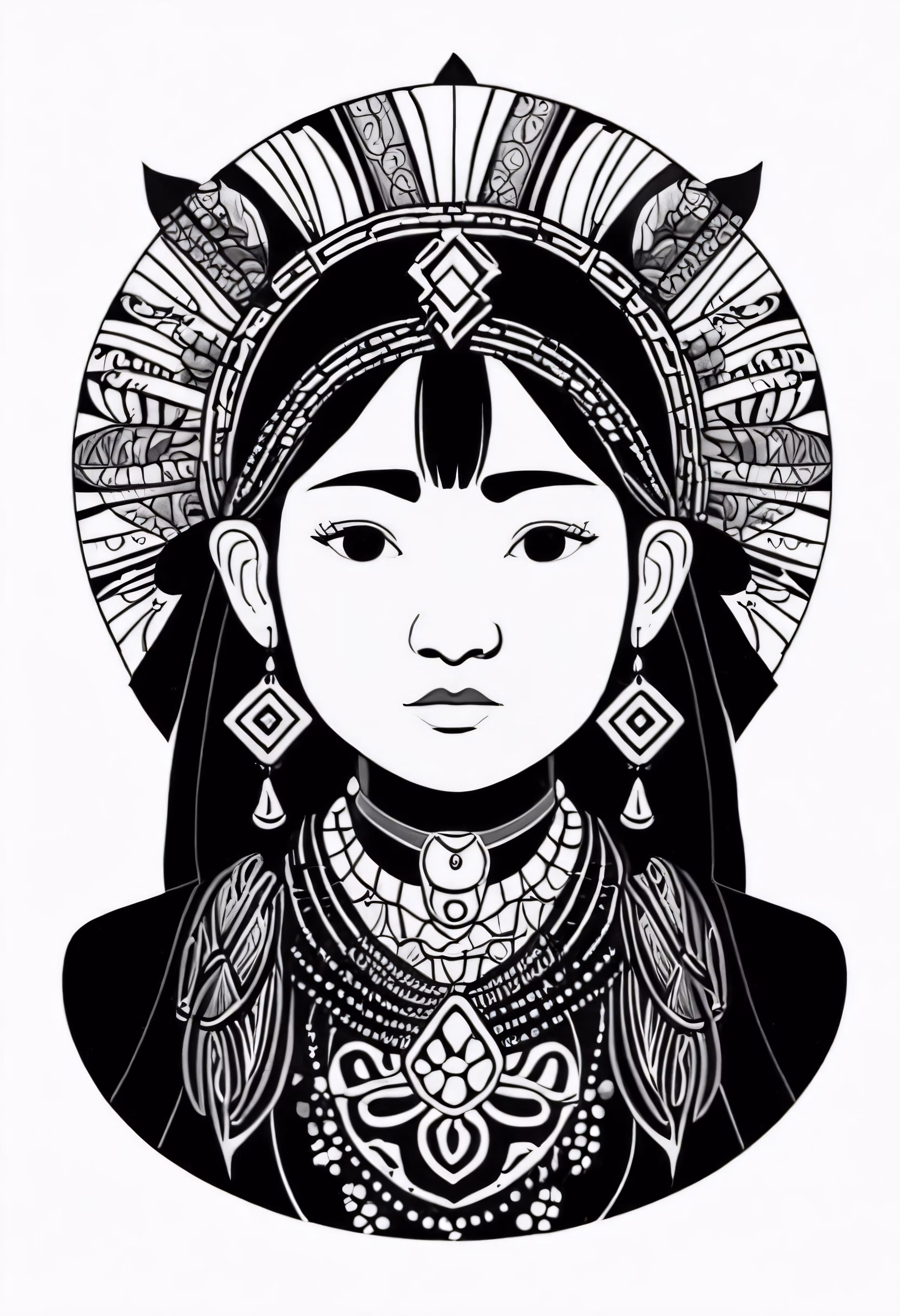 High resolution picture, free to use, an art deco illustration of a native american woman