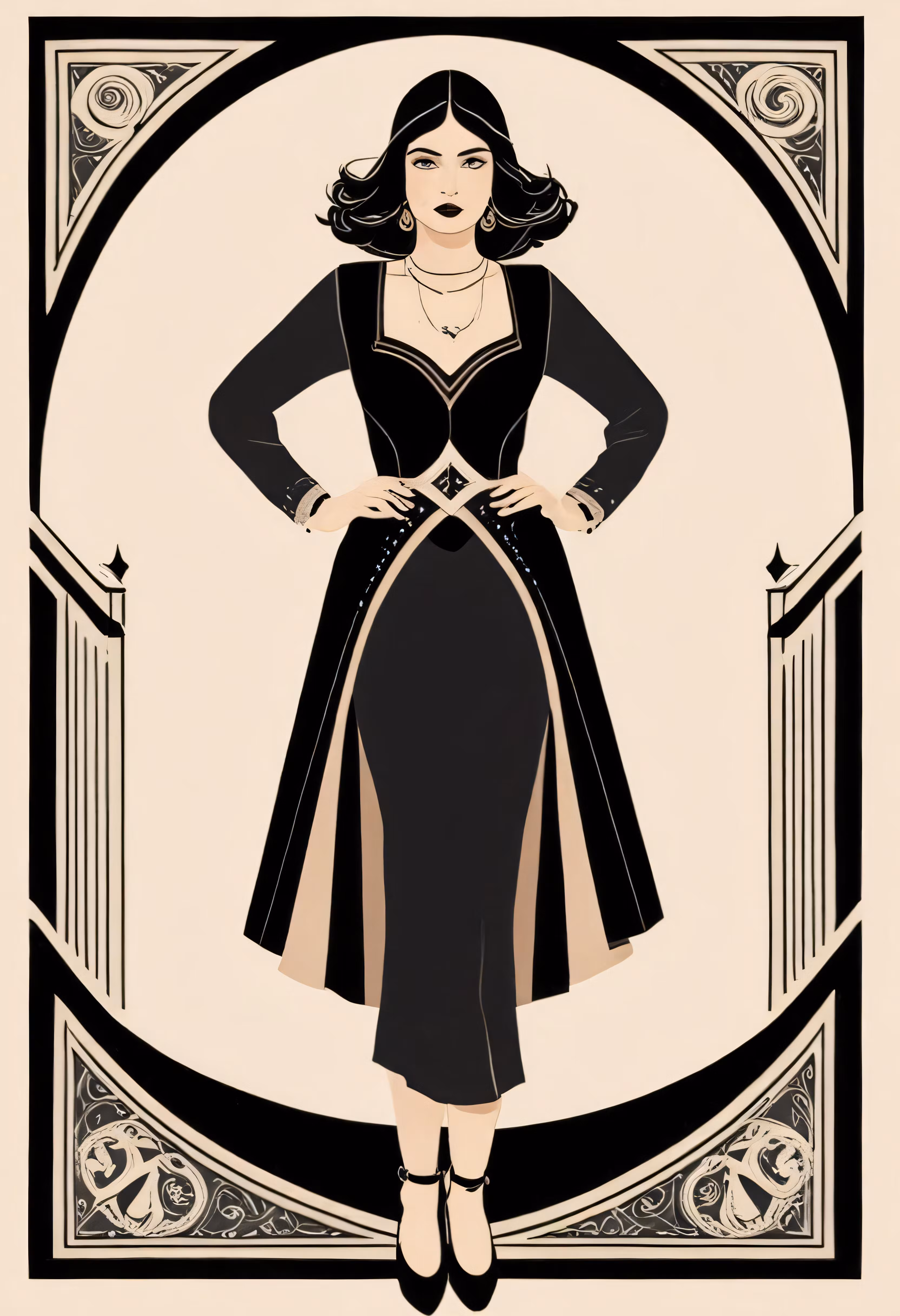 High resolution picture, free to use, an art deco poster featuring a woman in black