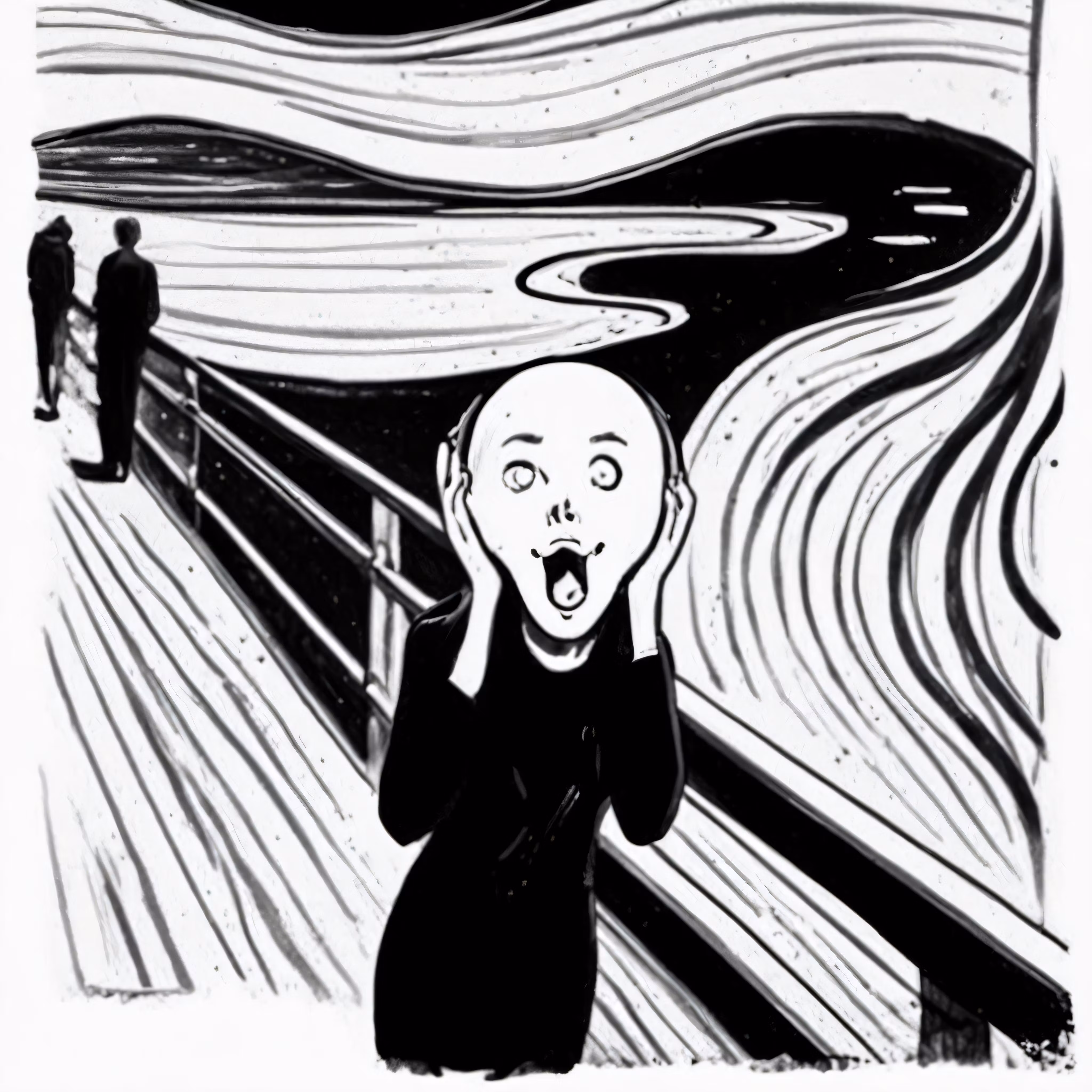 High resolution picture, free to use, an art drawing with a screaming painting on it