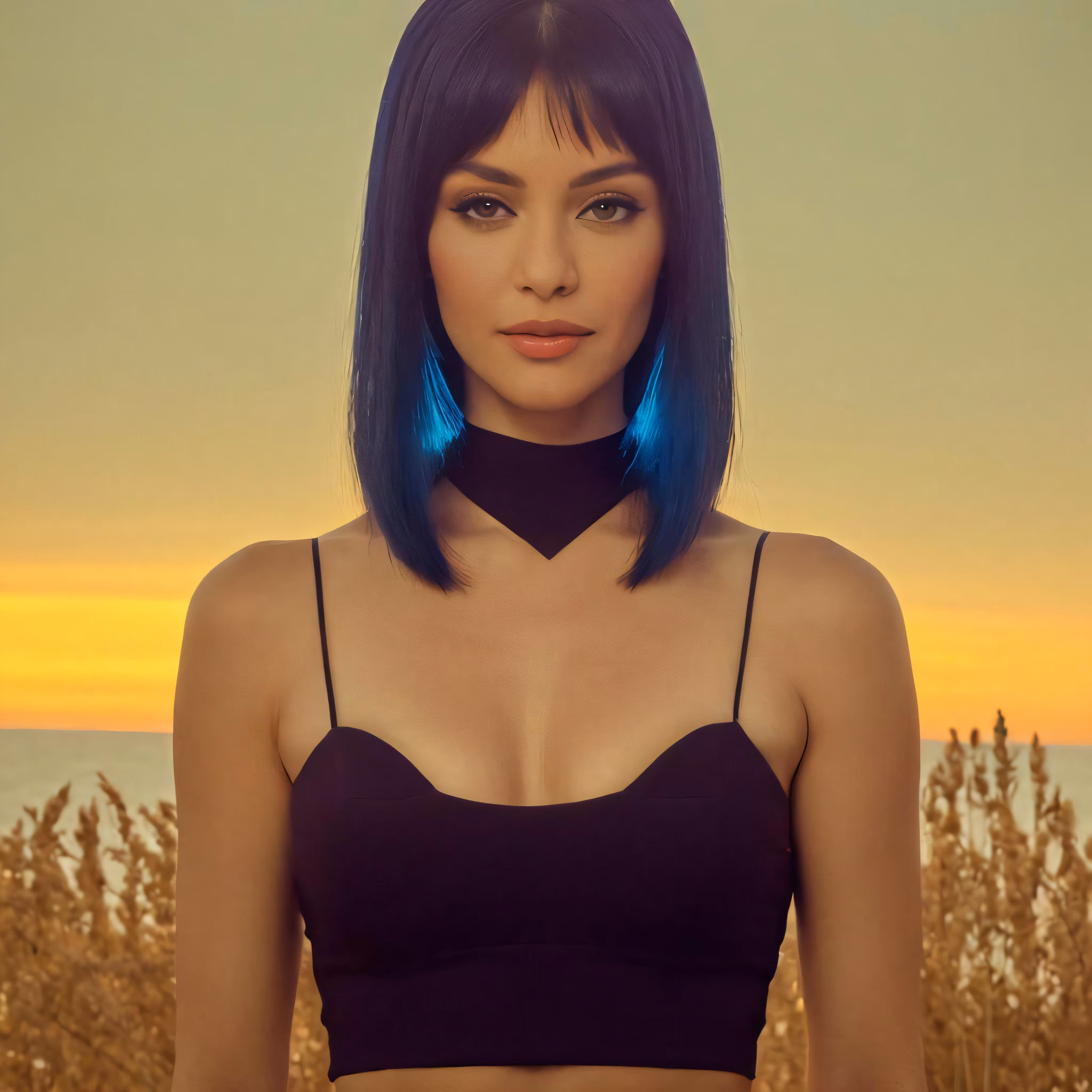 High resolution picture, free to use, an art picture of a woman with blue hair