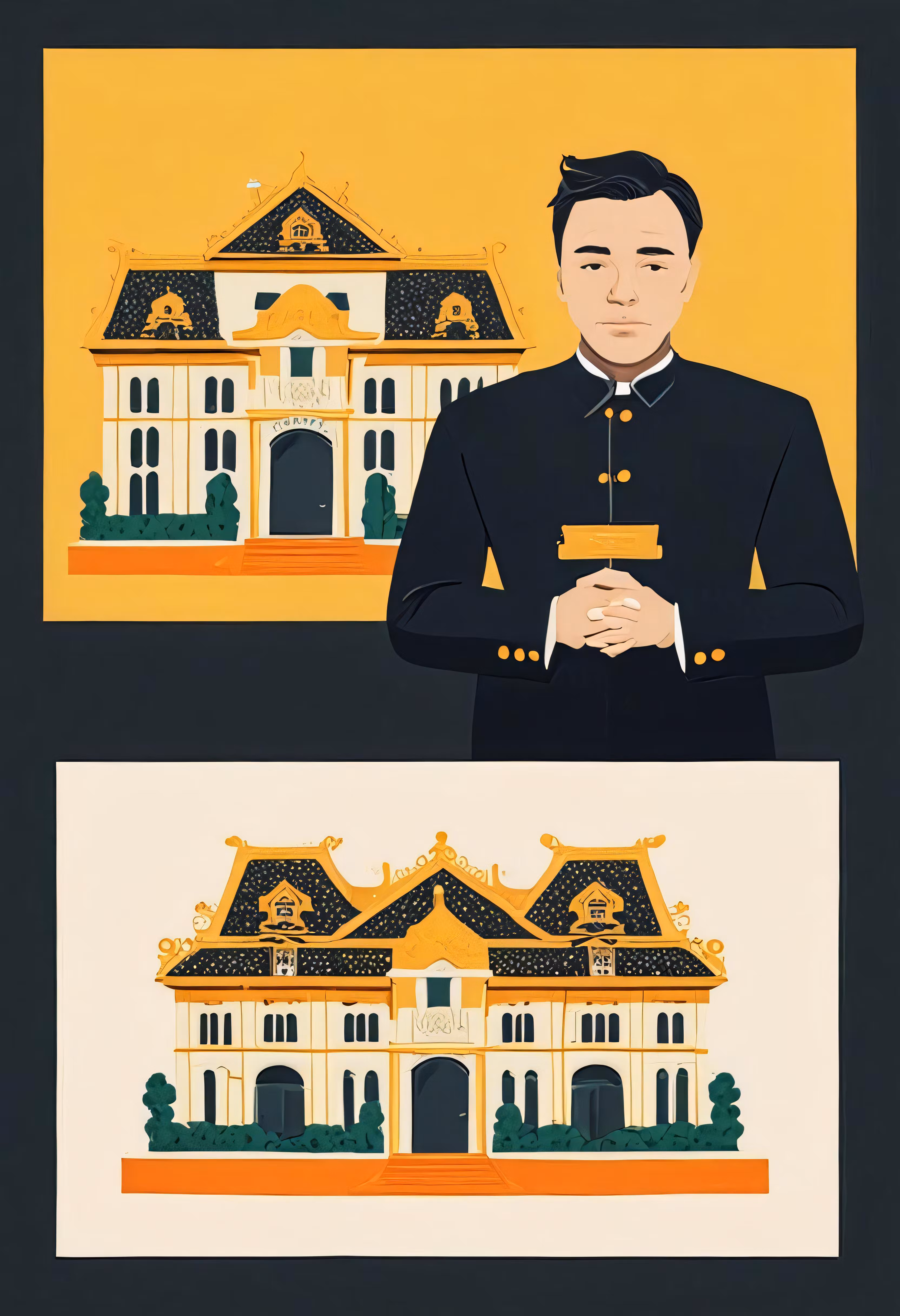High resolution picture, free to use, an art piece depicting two men in formal attire