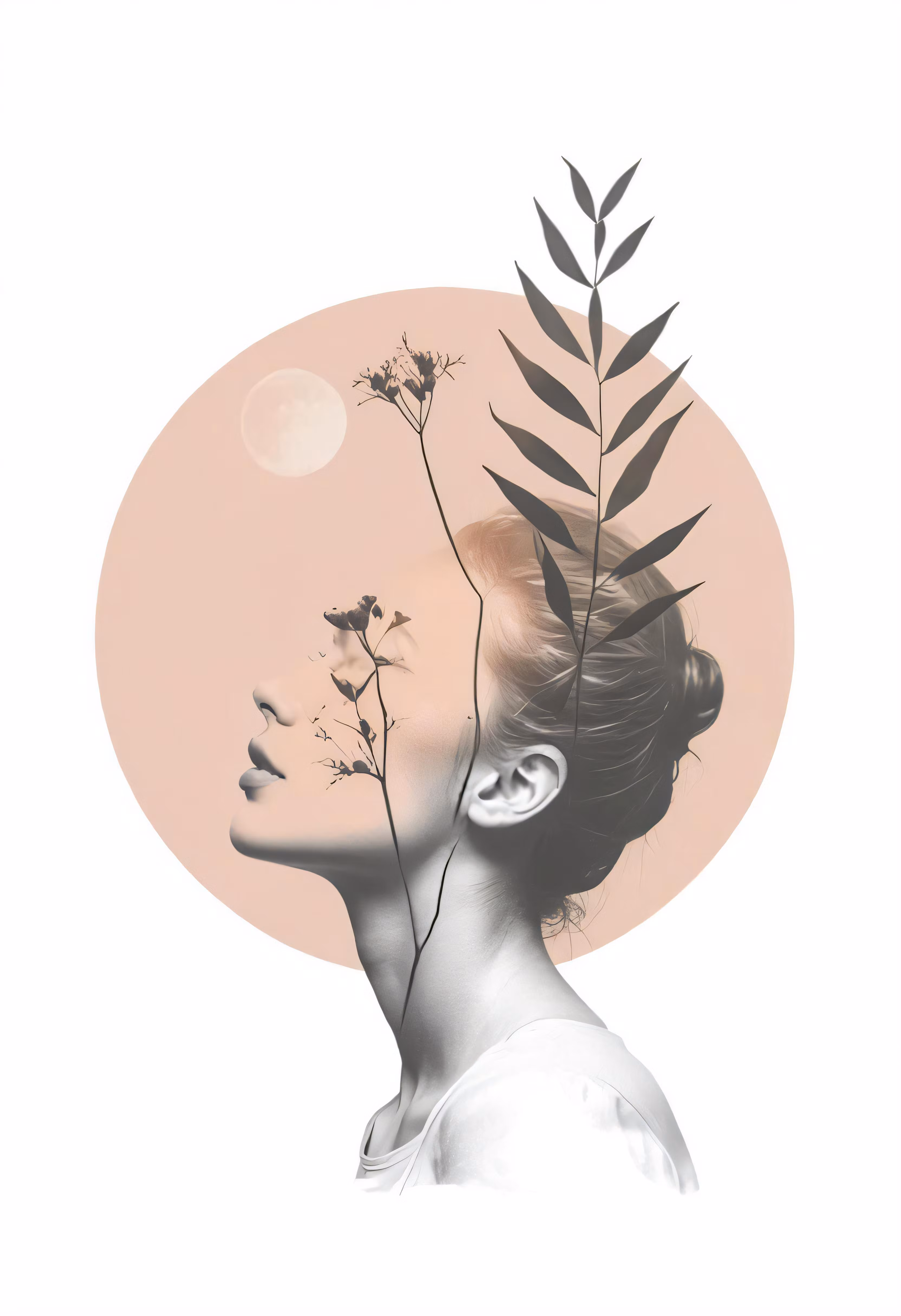 High resolution picture, free to use, an art work depicting a woman with leaves in her hair