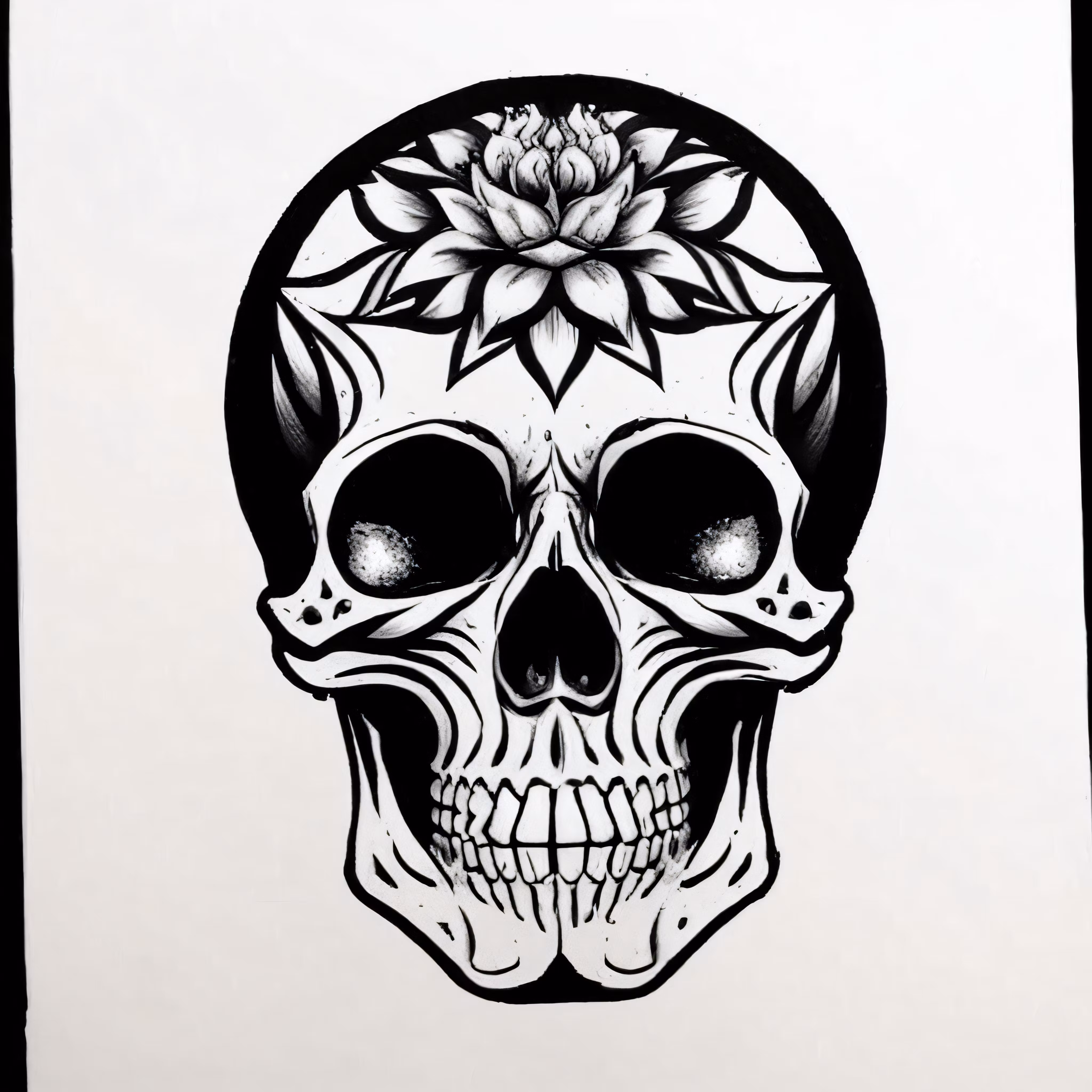High resolution picture, free to use, an art work featuring a skull with flowers