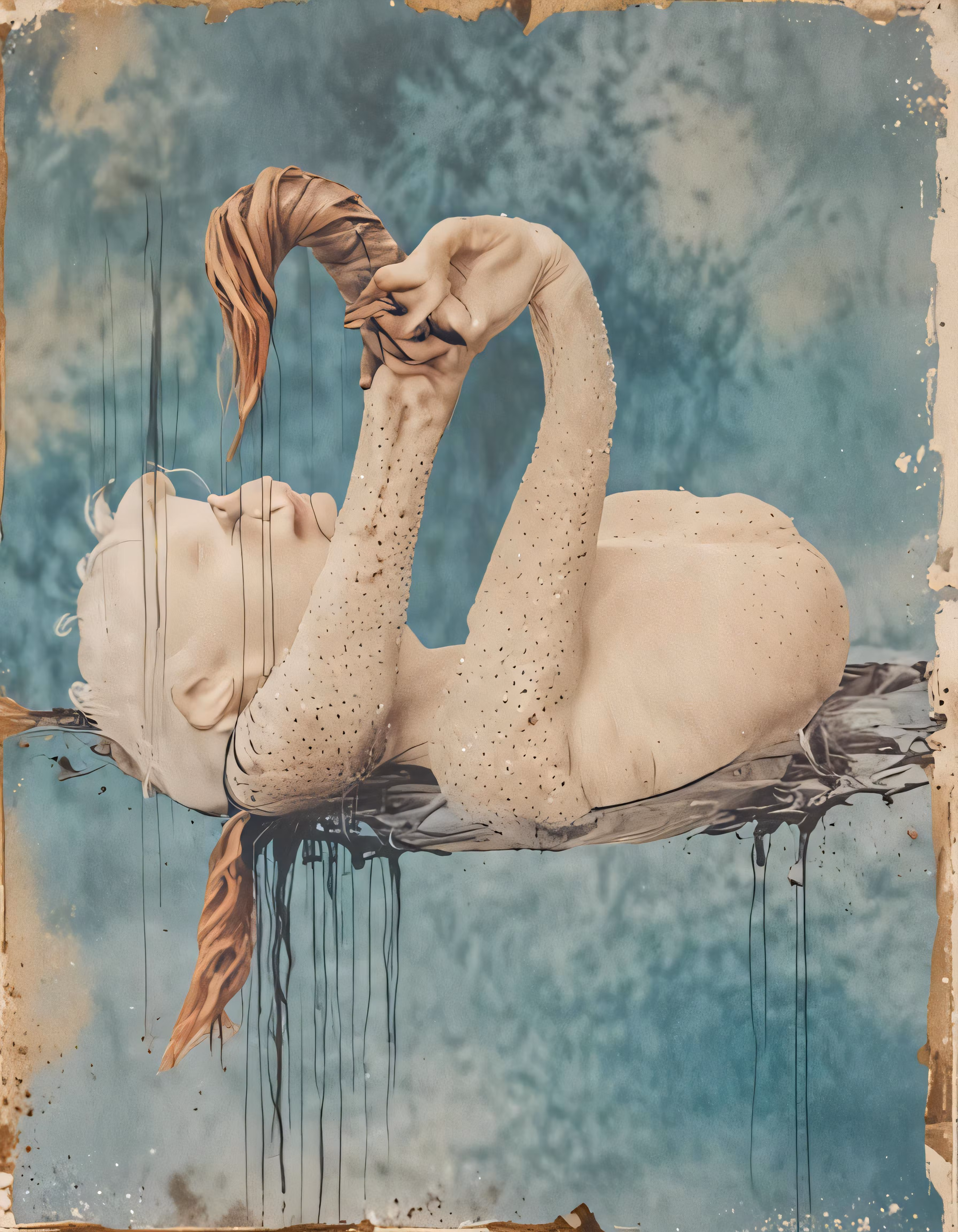 High resolution picture, free to use, an art work of a nude woman floating in water with her arms out