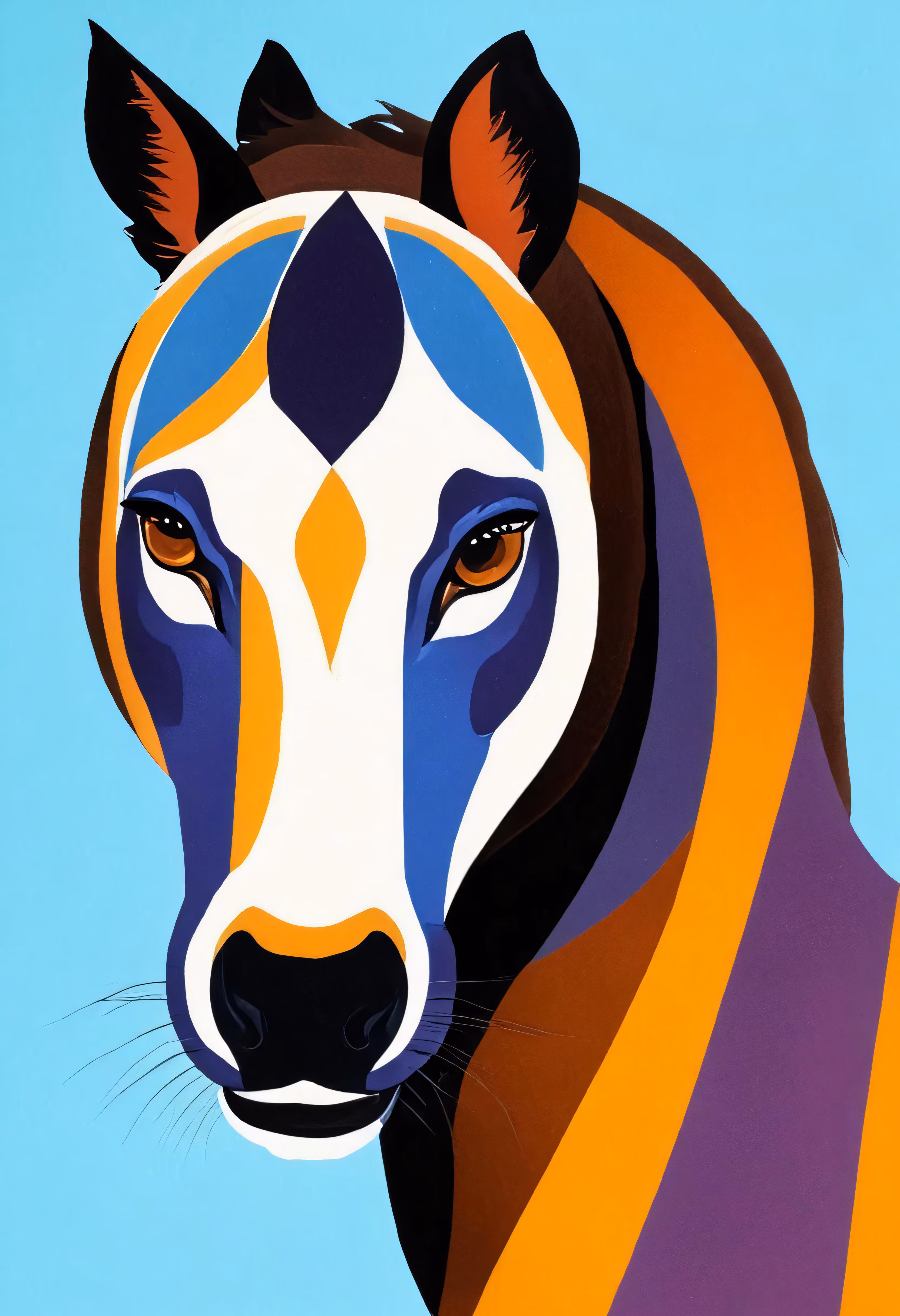High resolution picture, free to use, an artfully painted animal in yellow, purple, and blue