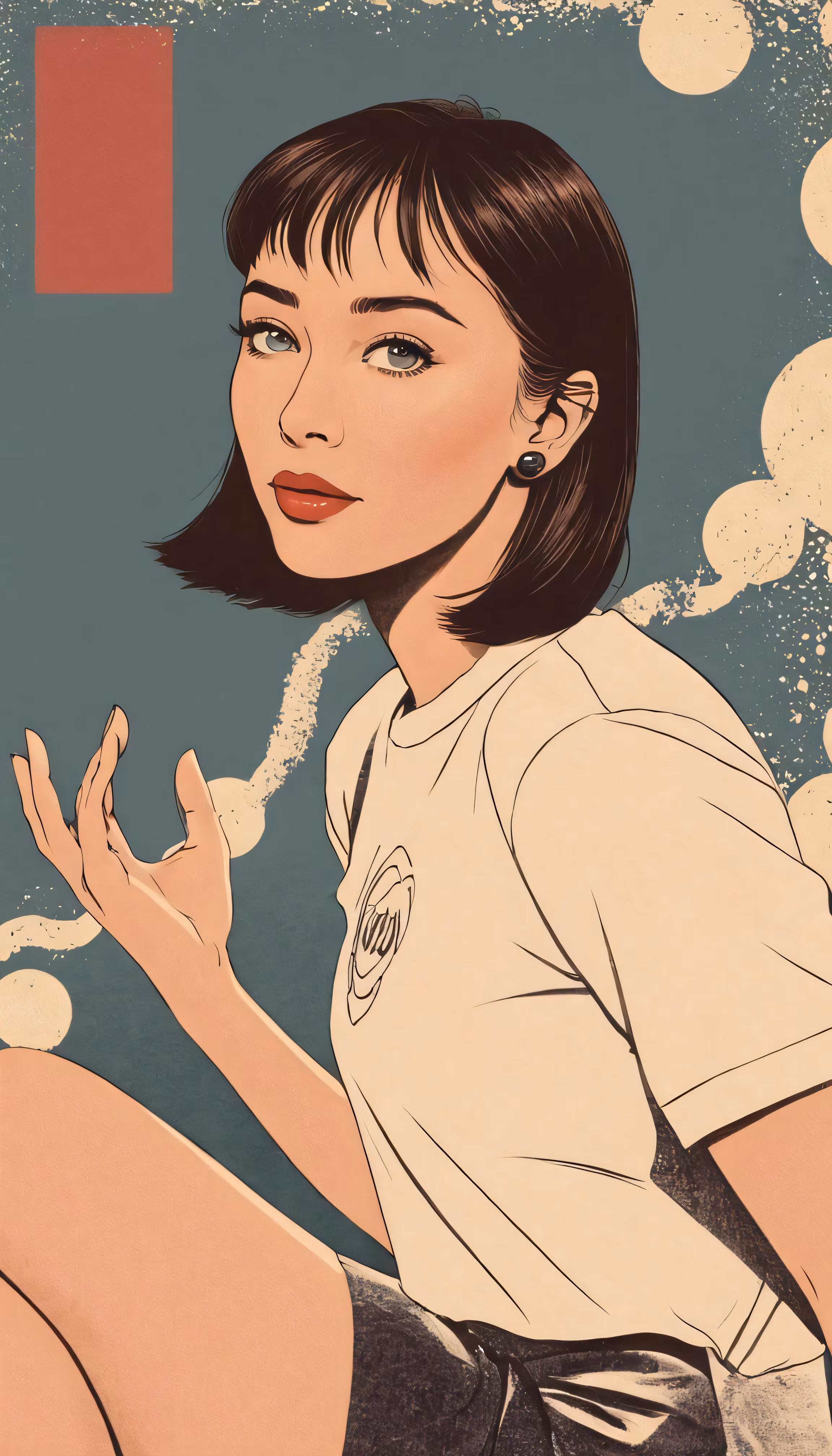 High resolution picture, free to use, an artistic art work of a woman wearing a white shirt